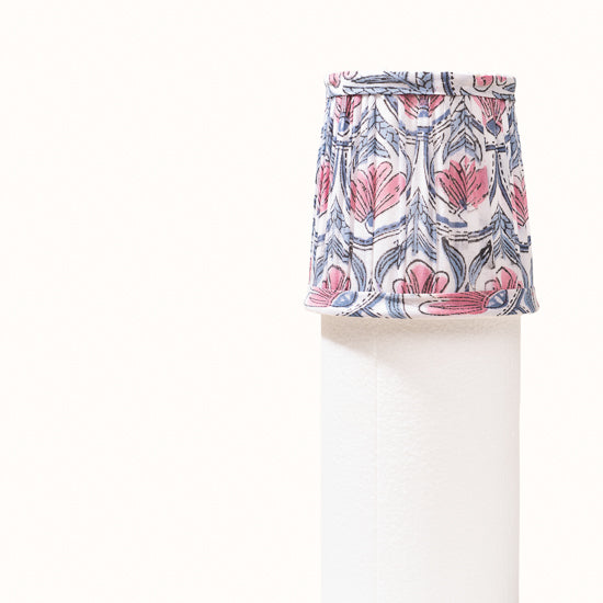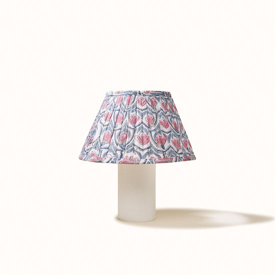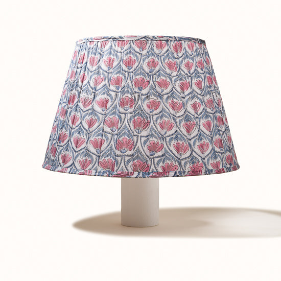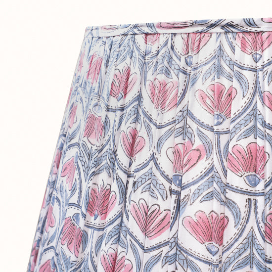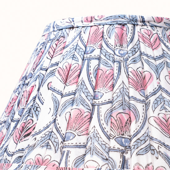 Abat jour en coton plissé blanc imprimé nénuphars rose.