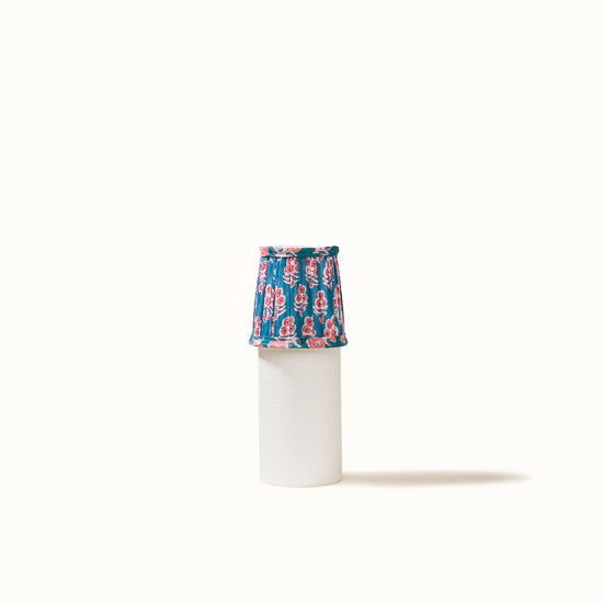Abat Jour plissé bleu denim imprimé fleurs roses.