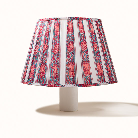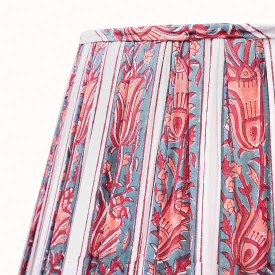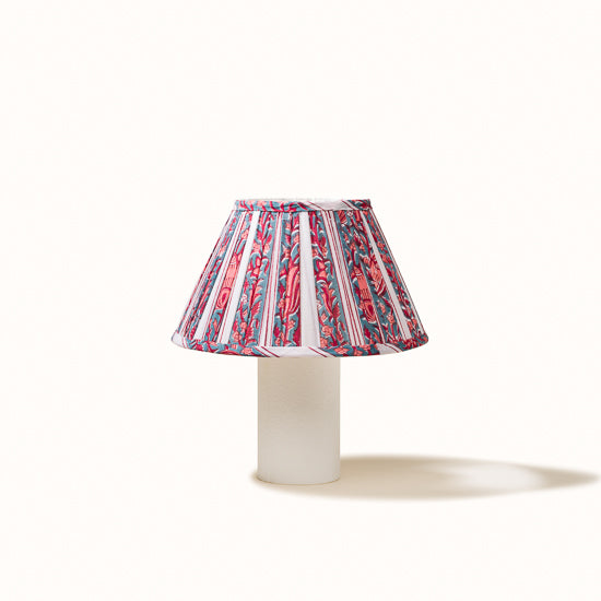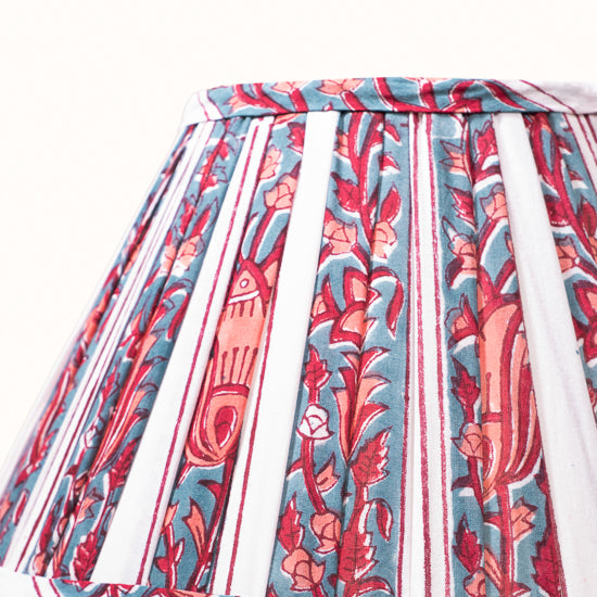 Abat Jour plissé blanc omprimé bleu denim et saumon.