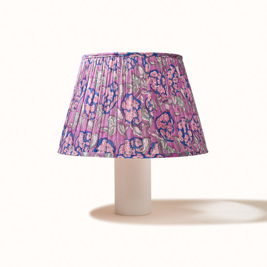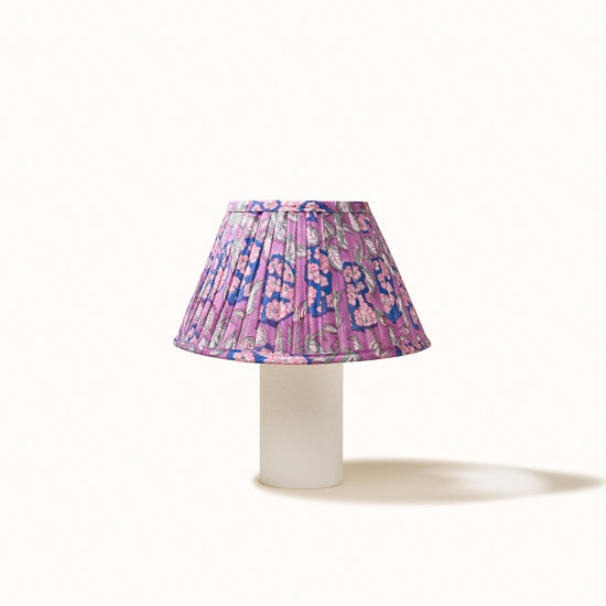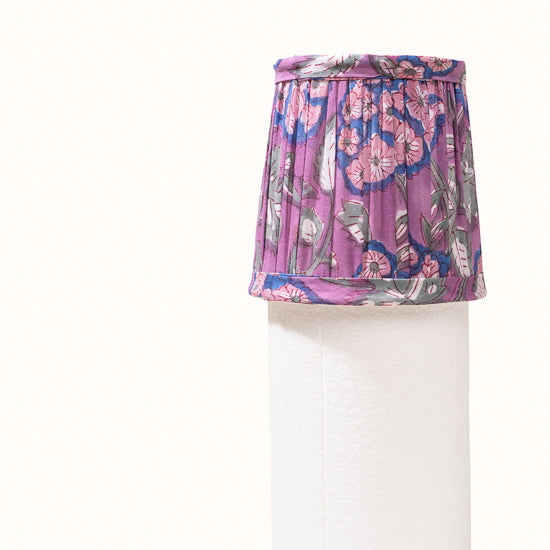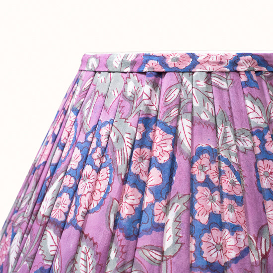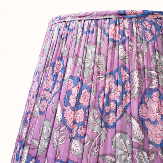 Abat jour en coton plissé lila imprimé hortensias ton sur ton.