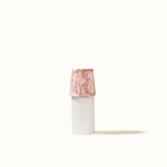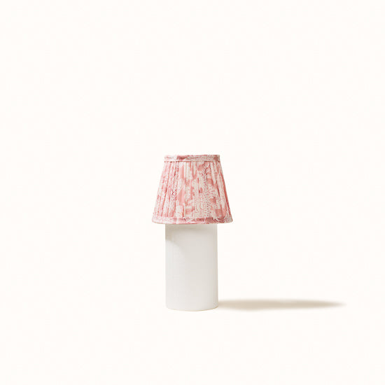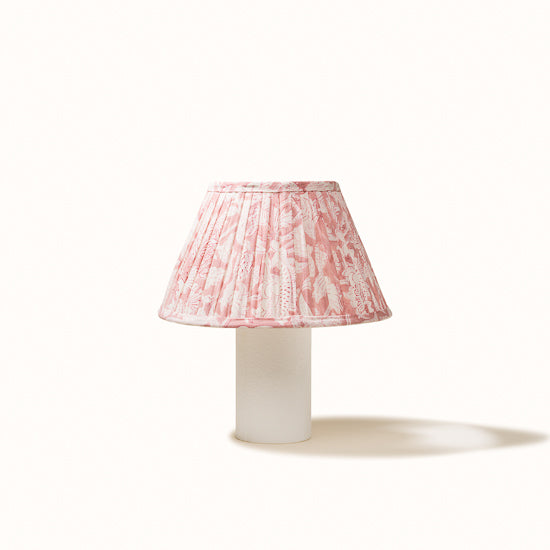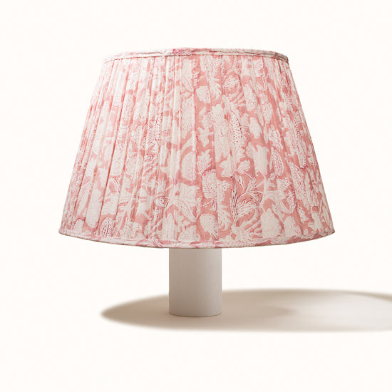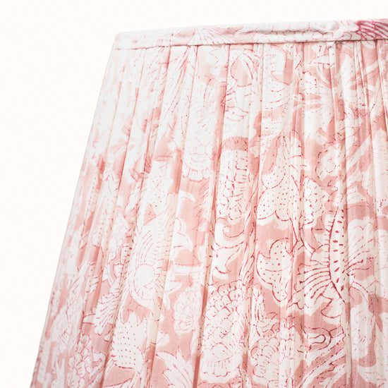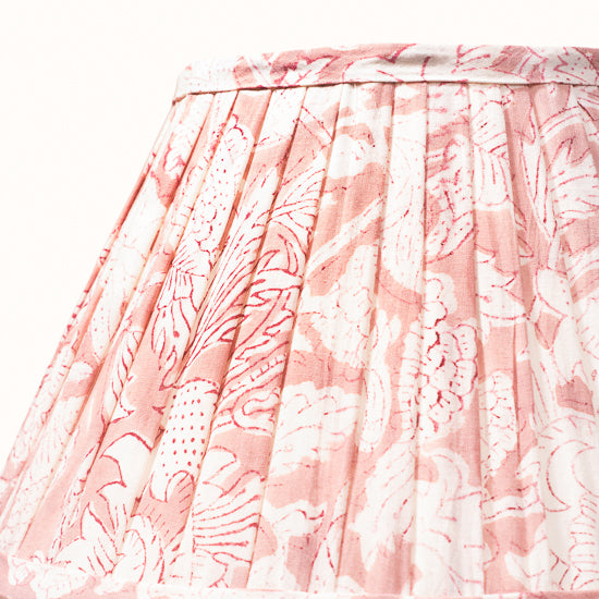 Abat jour en coton plissé rose pâle imprimé fleurs.