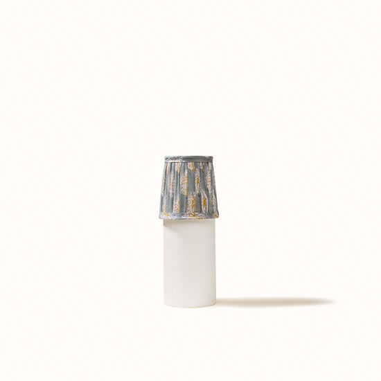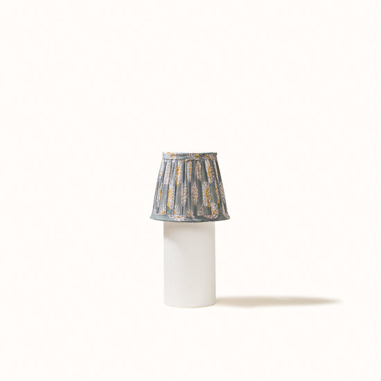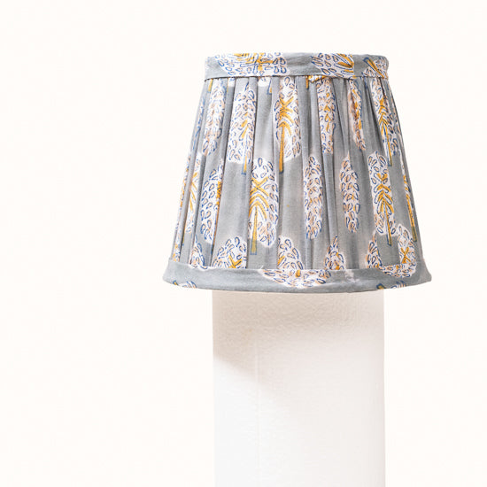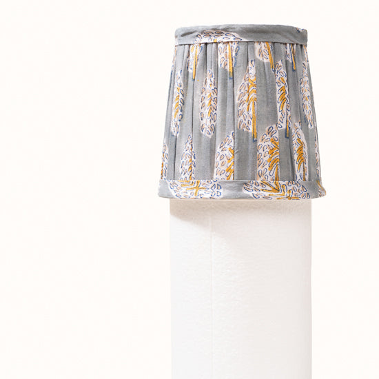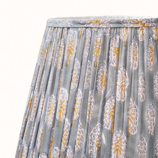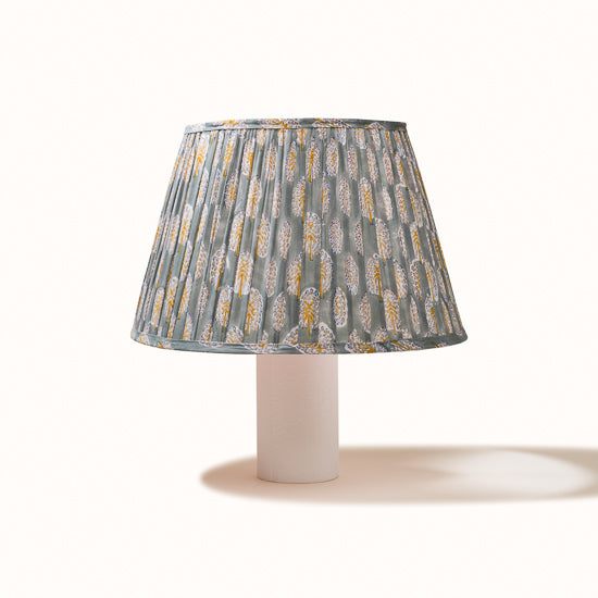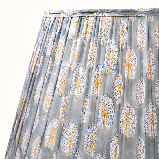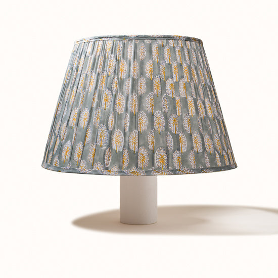 Abat jour en coton plissé vert de gris imprimé jaune safran.