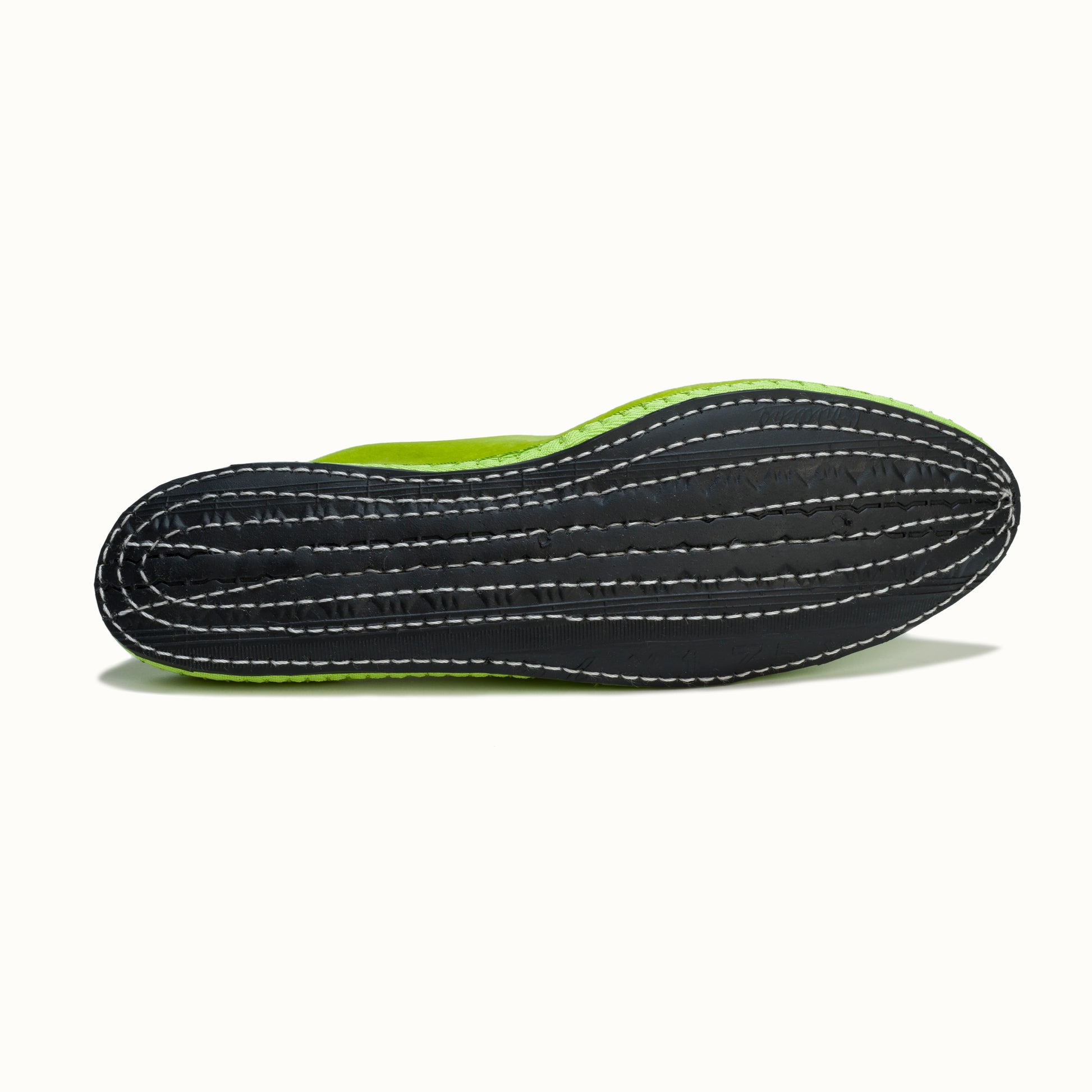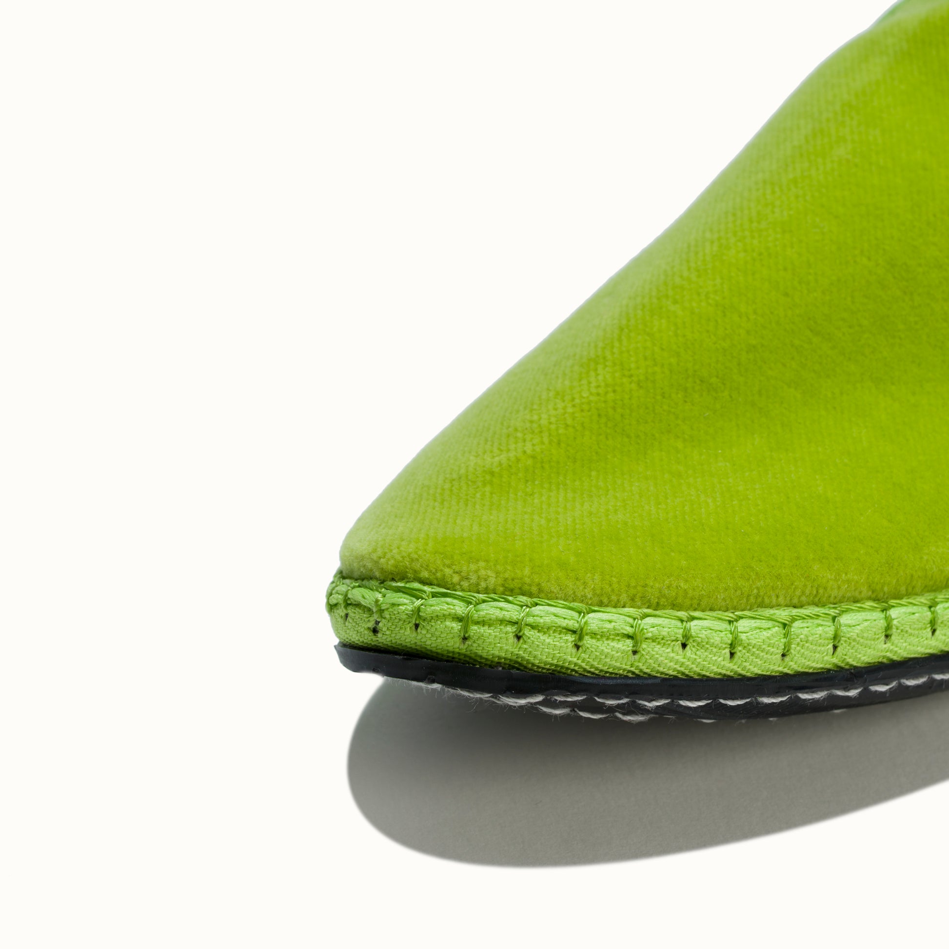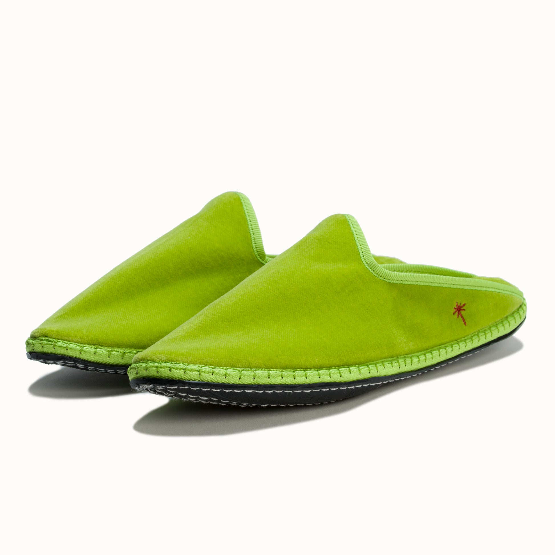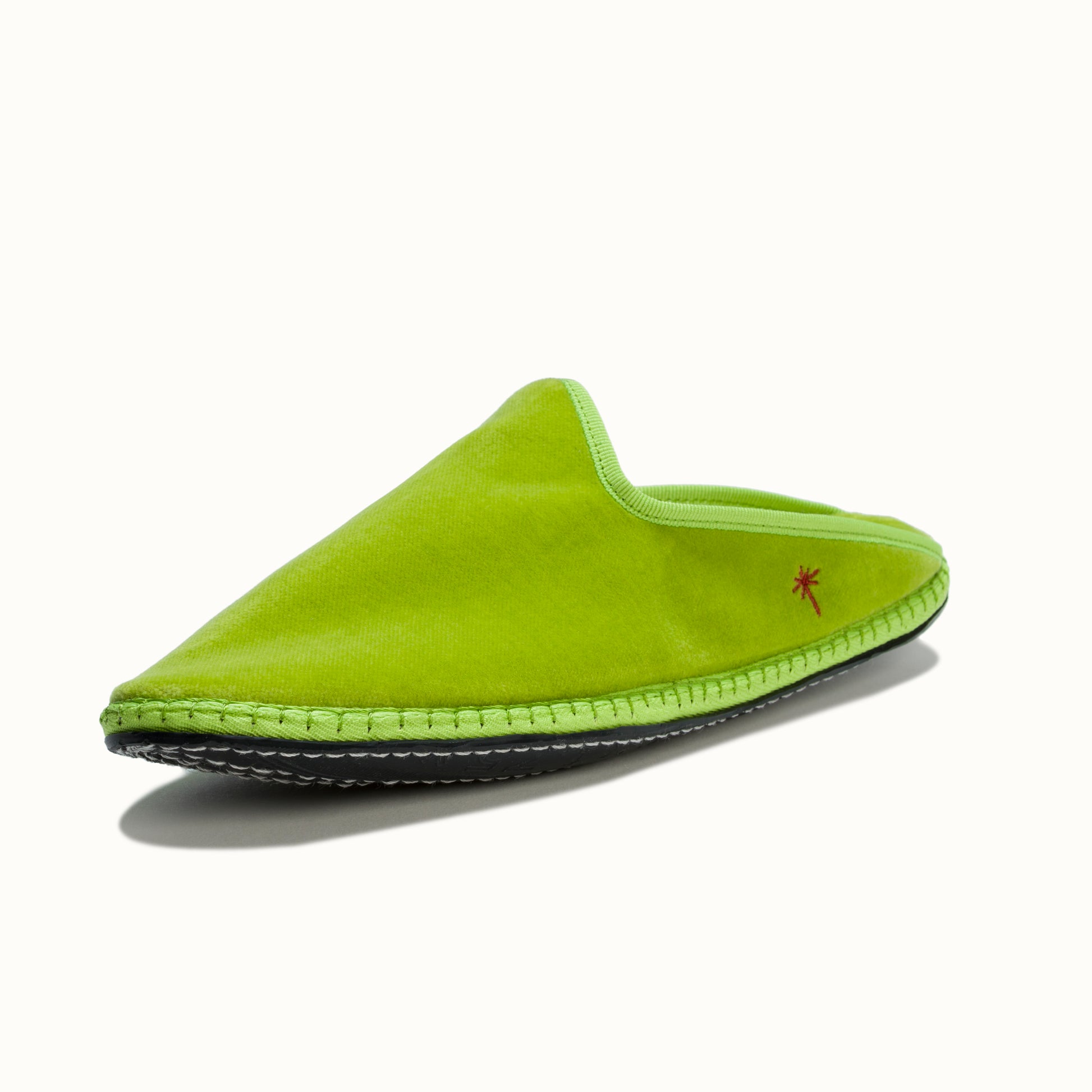 Apple-green velvet slippers with tone-on-tone grosgrain.