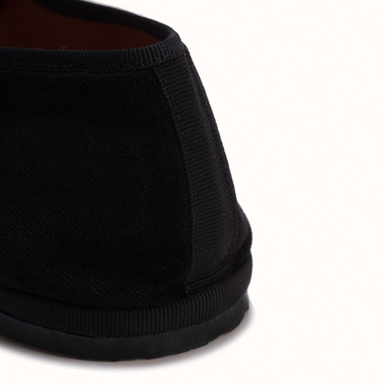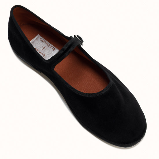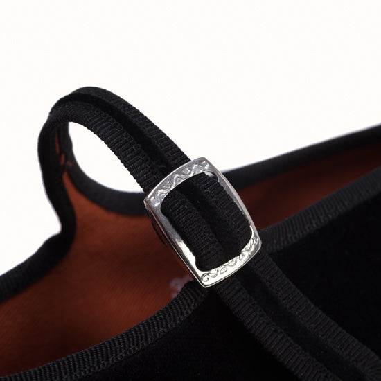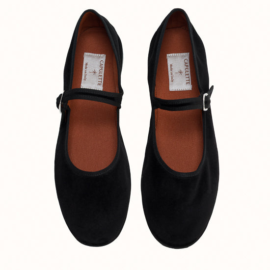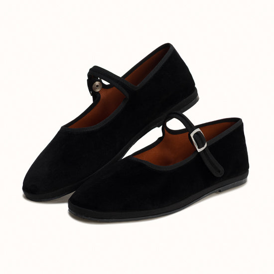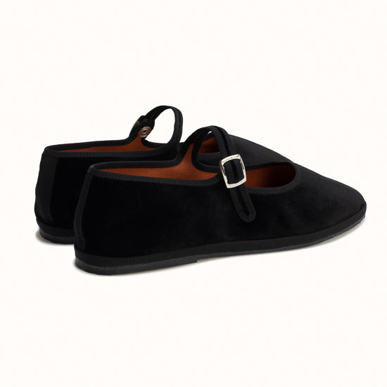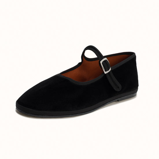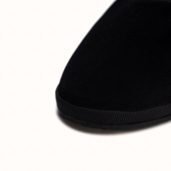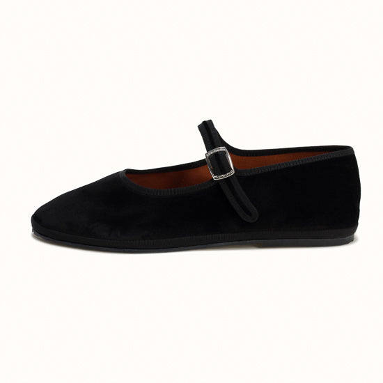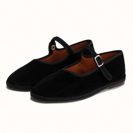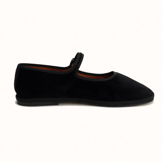 Mary-Jane in black velvet with tone-on-tone grosgrain edging.