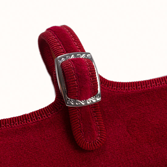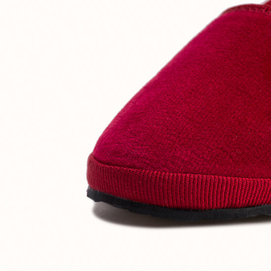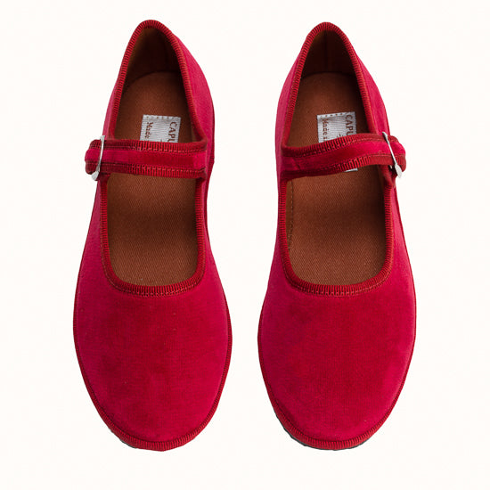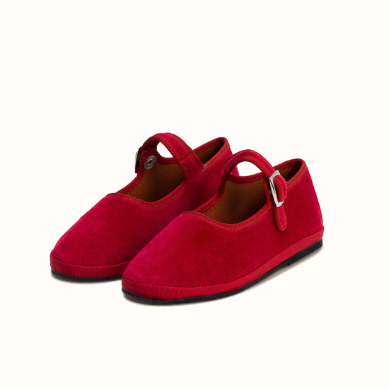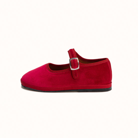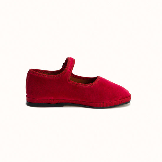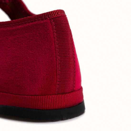 Mary-Jane en velours rouge cerise et rebords en gros grain ton sur ton.