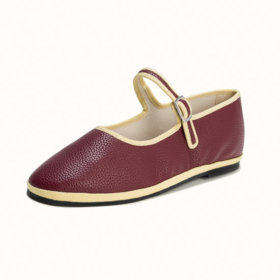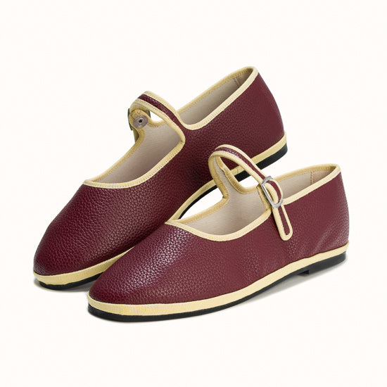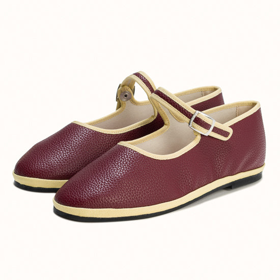 Maryjane embout carré en simili cuir bordeaux.