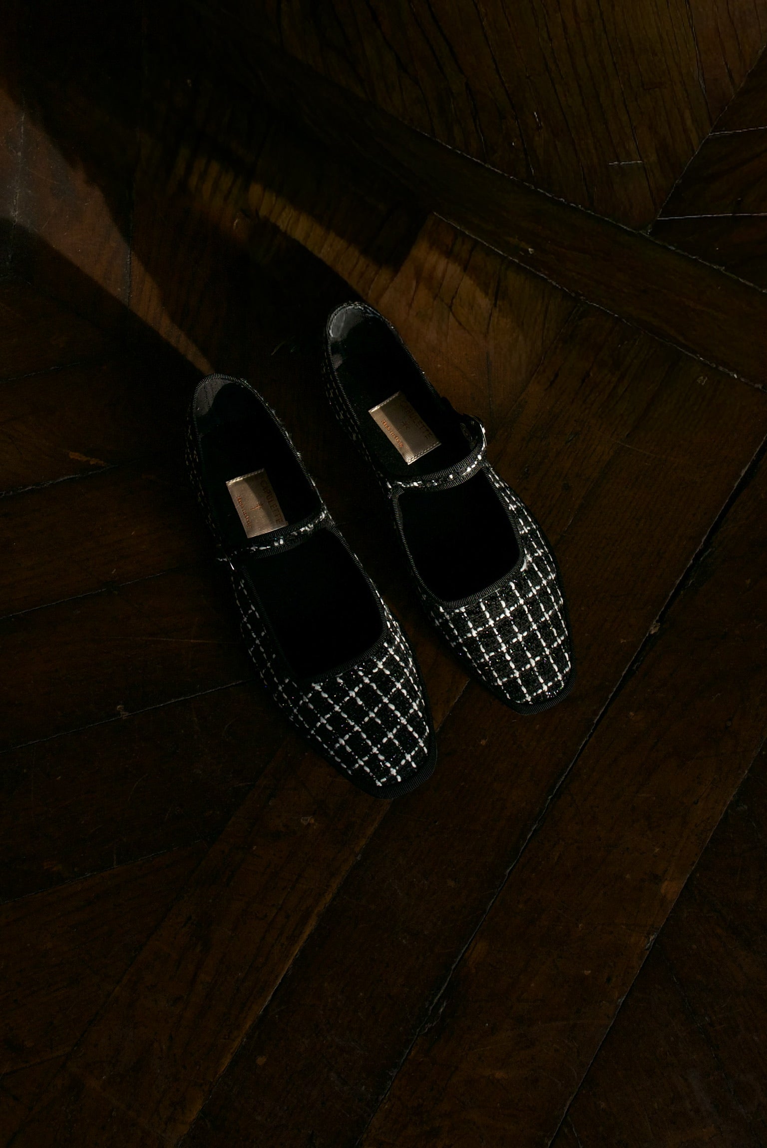Maryjane in black and white tweed.
