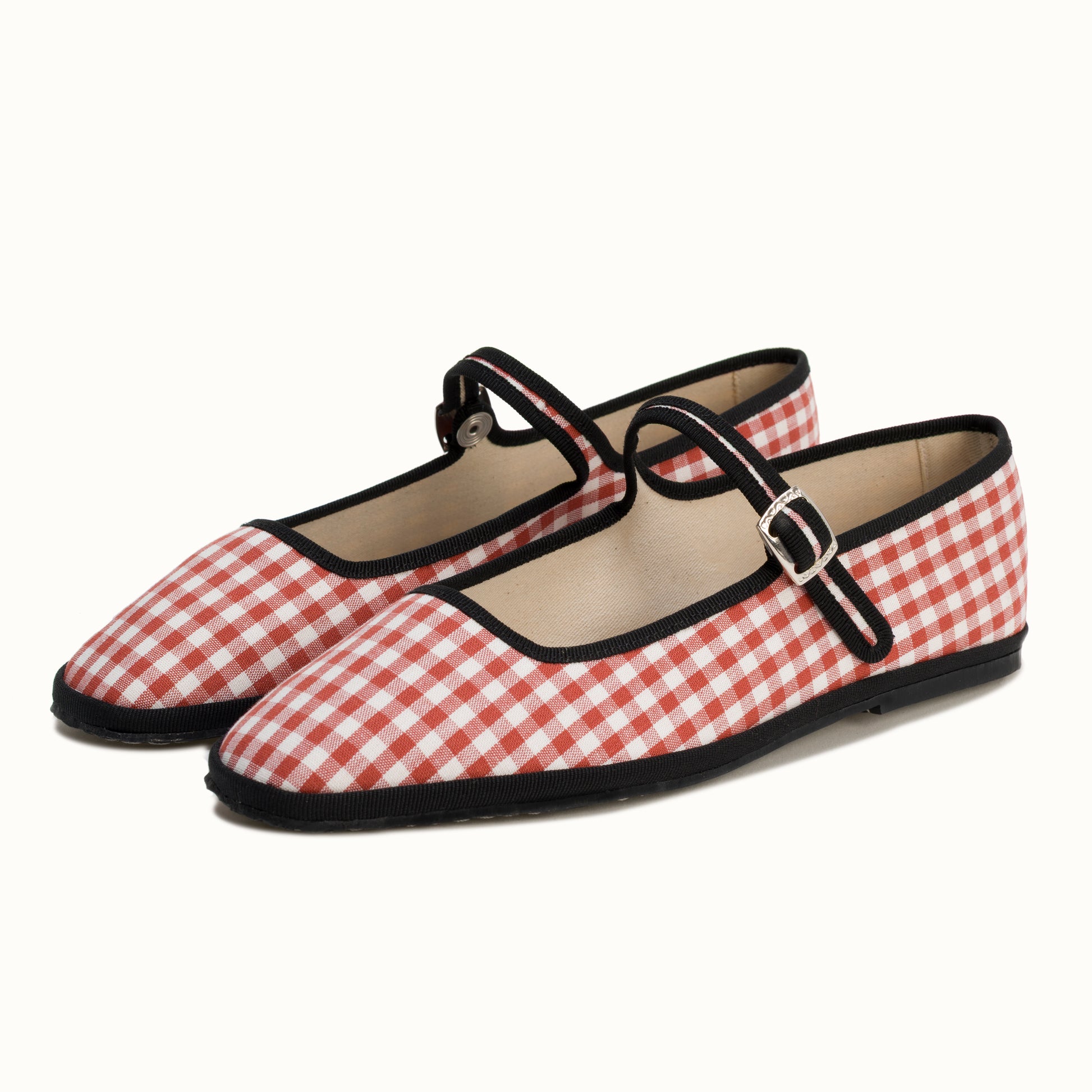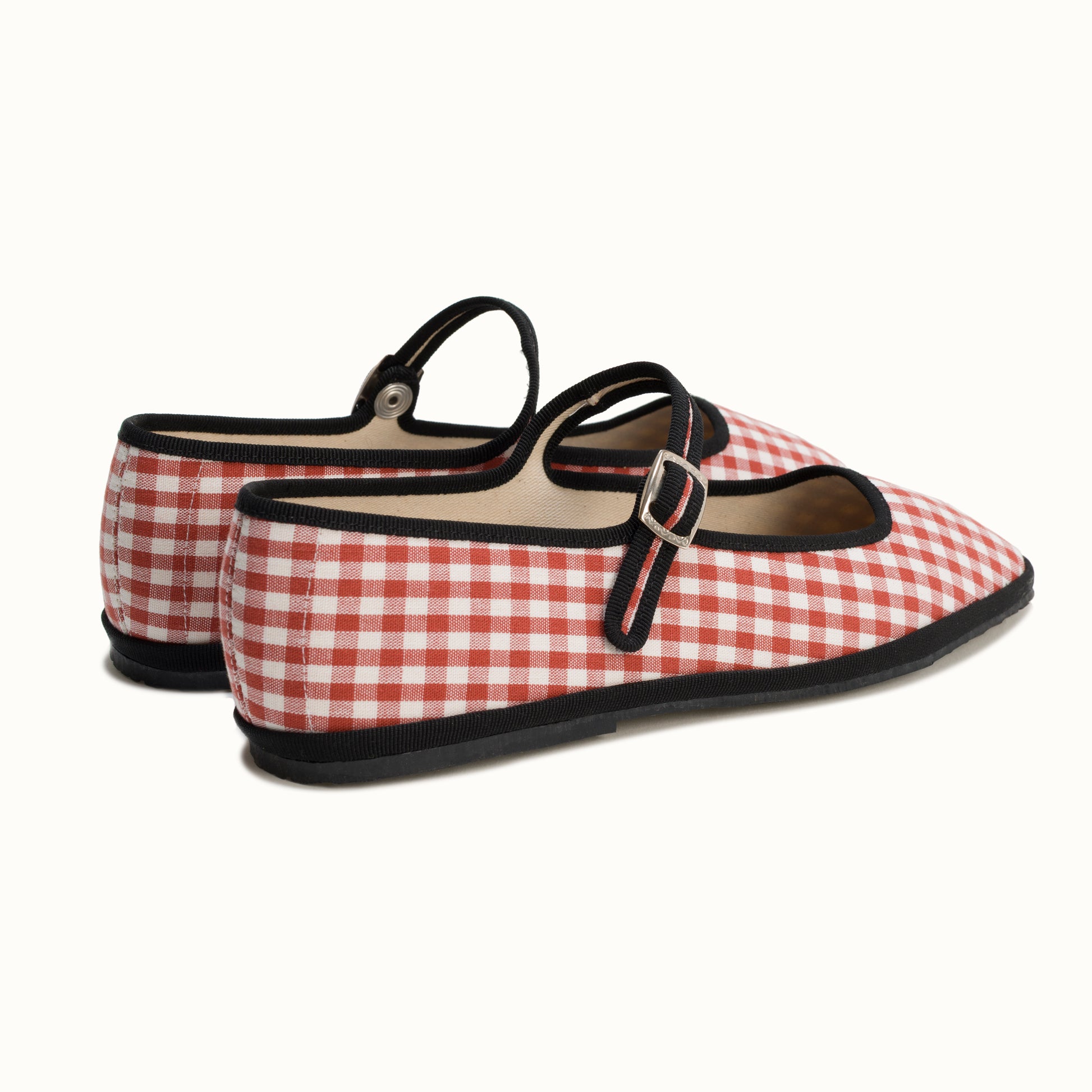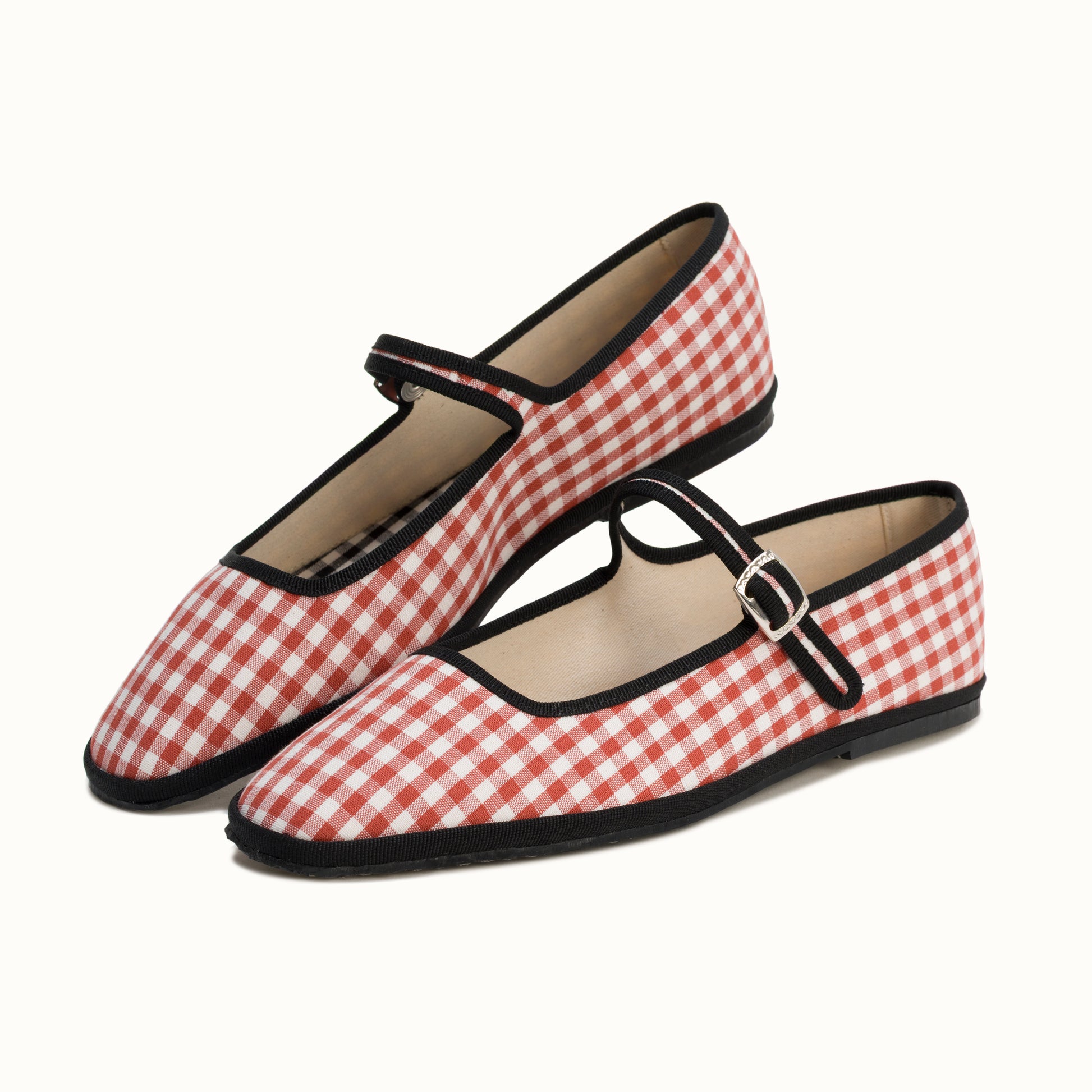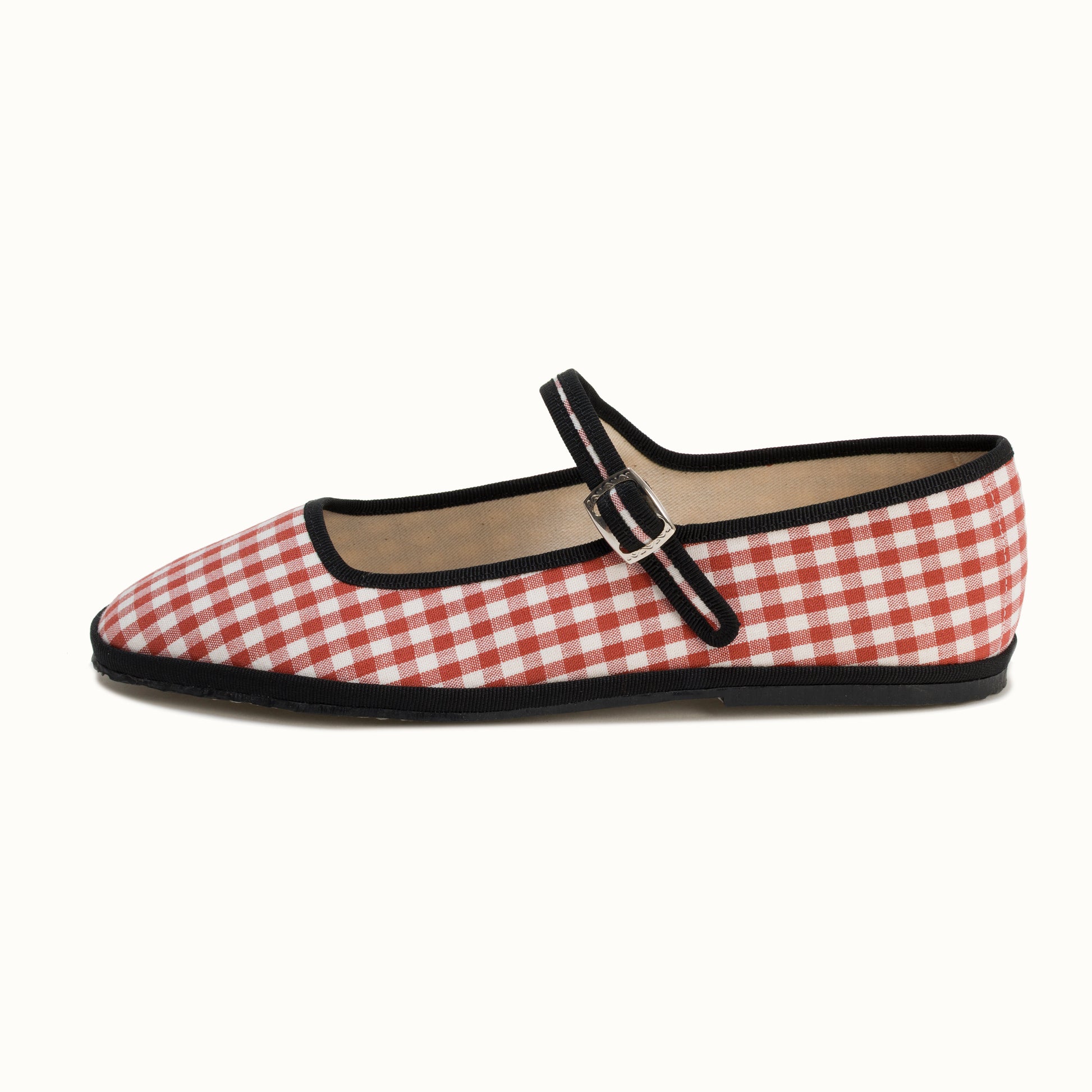 La semelle intérieure est en coton vichy noir et la semelle extérieure est en gomme à résistance renforcée.