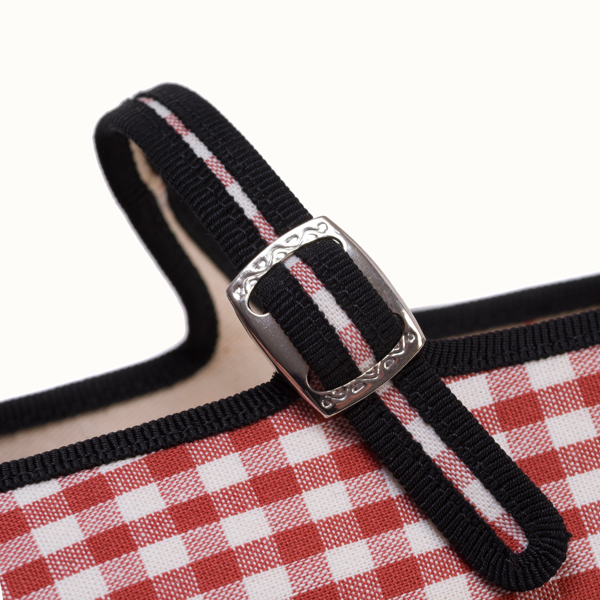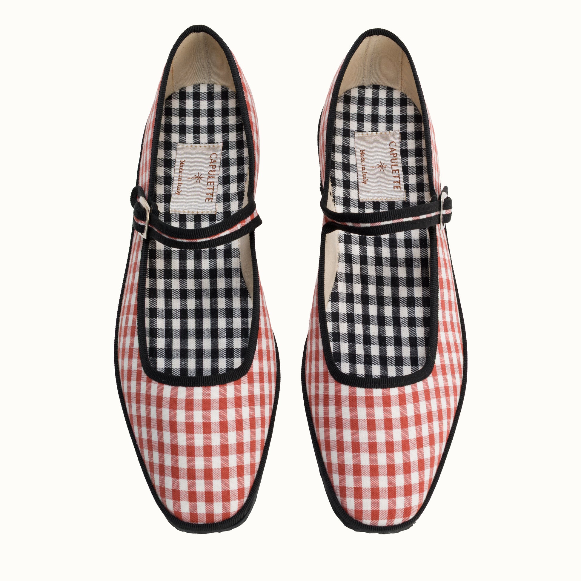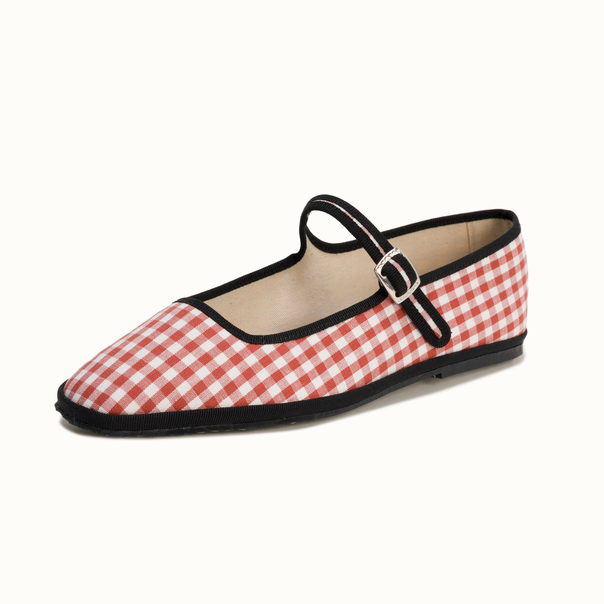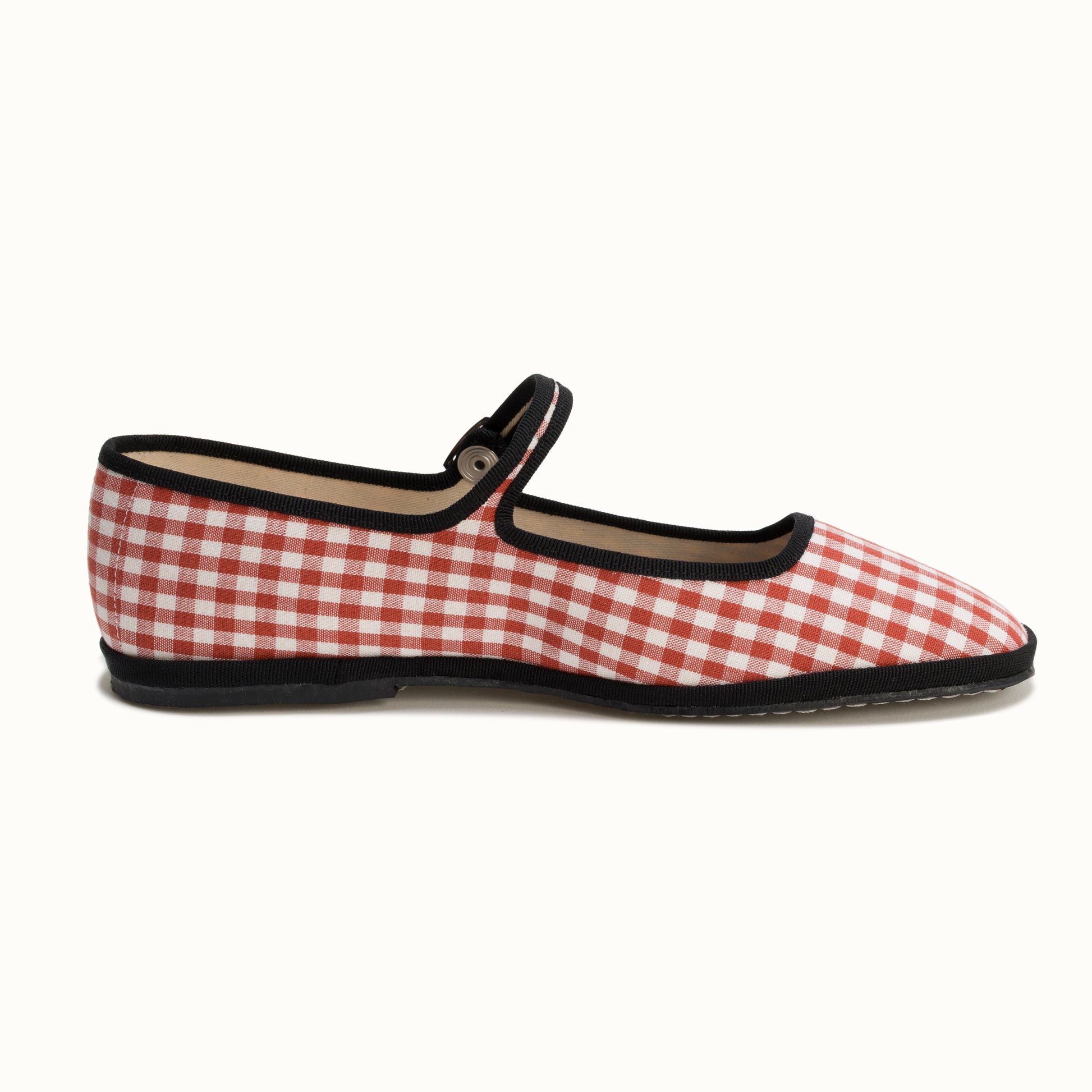 La semelle intérieure est en coton vichy noir et la semelle extérieure est en gomme à résistance renforcée.