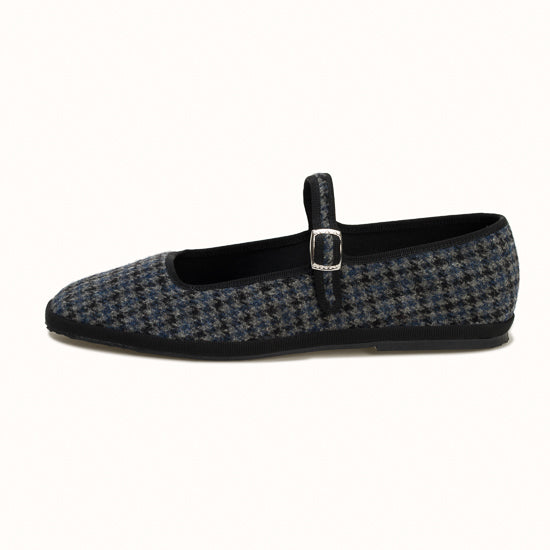 Maryjane embout carré en laine écossaise gris anthracite.