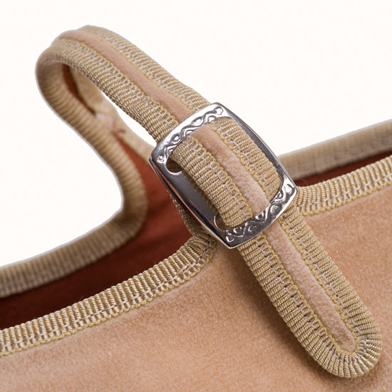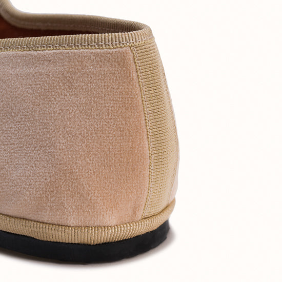 Mary-Jane en velours beige et rebords en gros grain ton sur ton.
