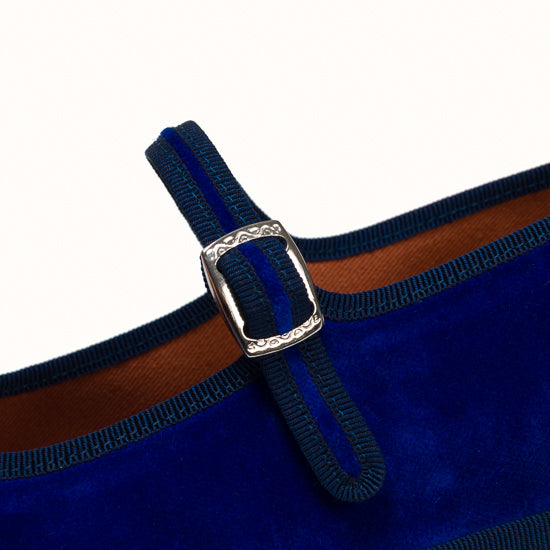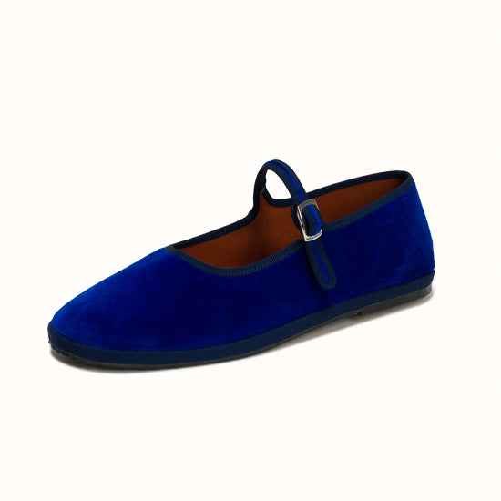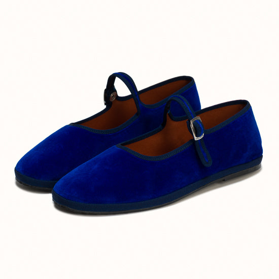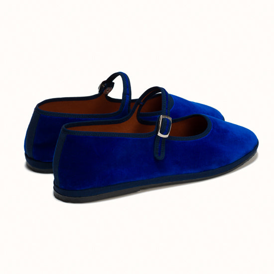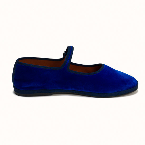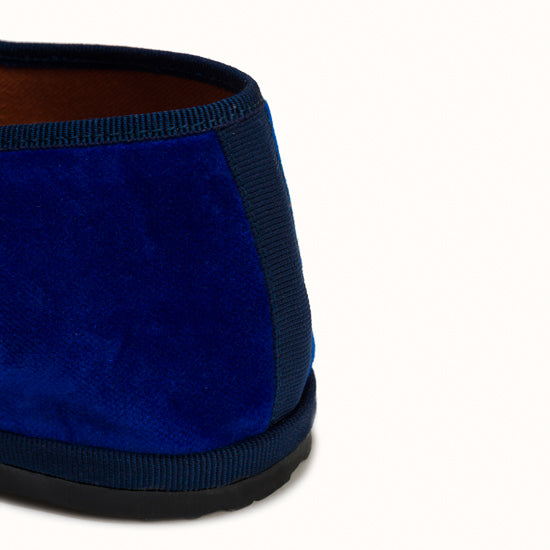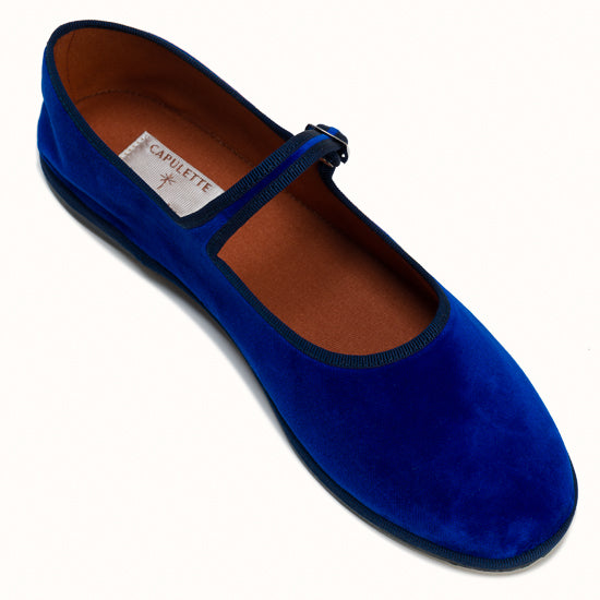 Mary-Jane en velours bleu roi et rebords en gros grain ton sur ton.