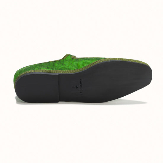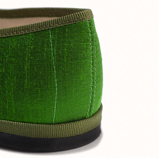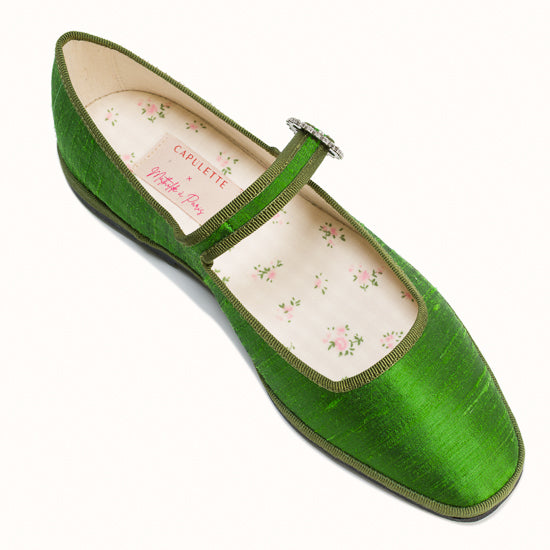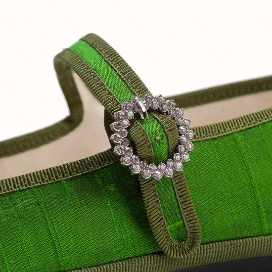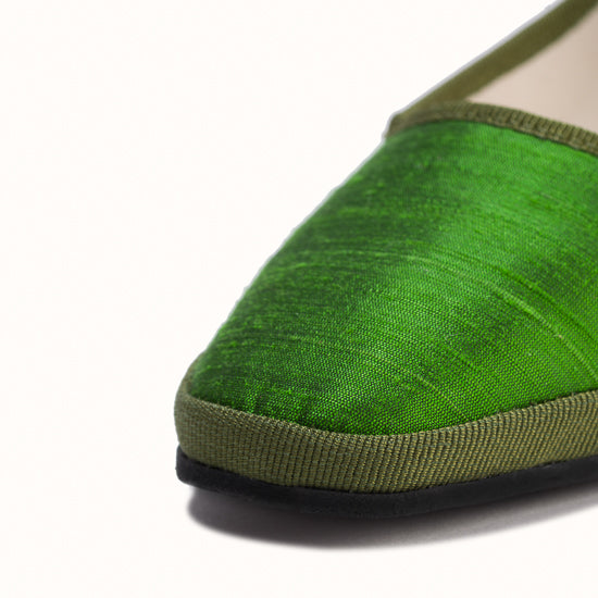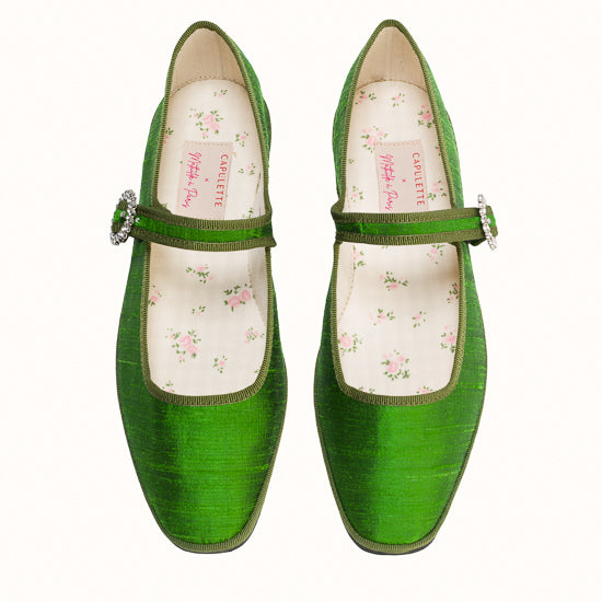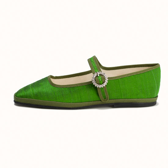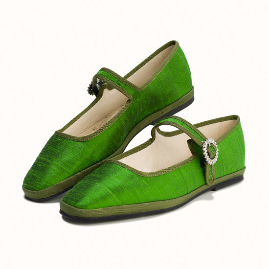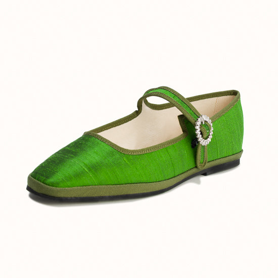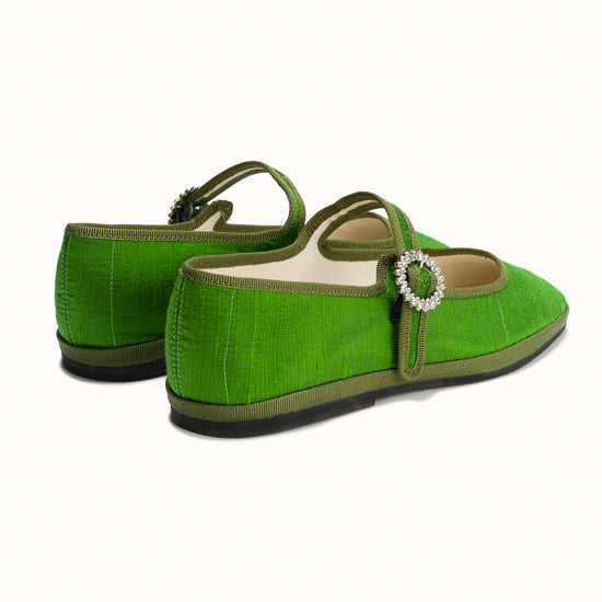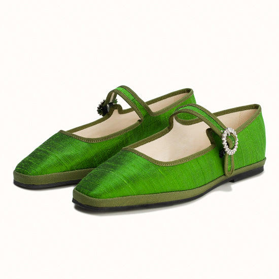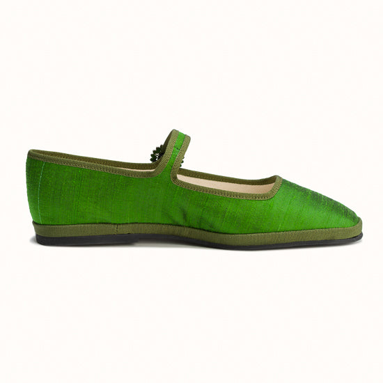 Modèle Bambinetta - Maryjane embout carré en soie sauvage vert herbe.