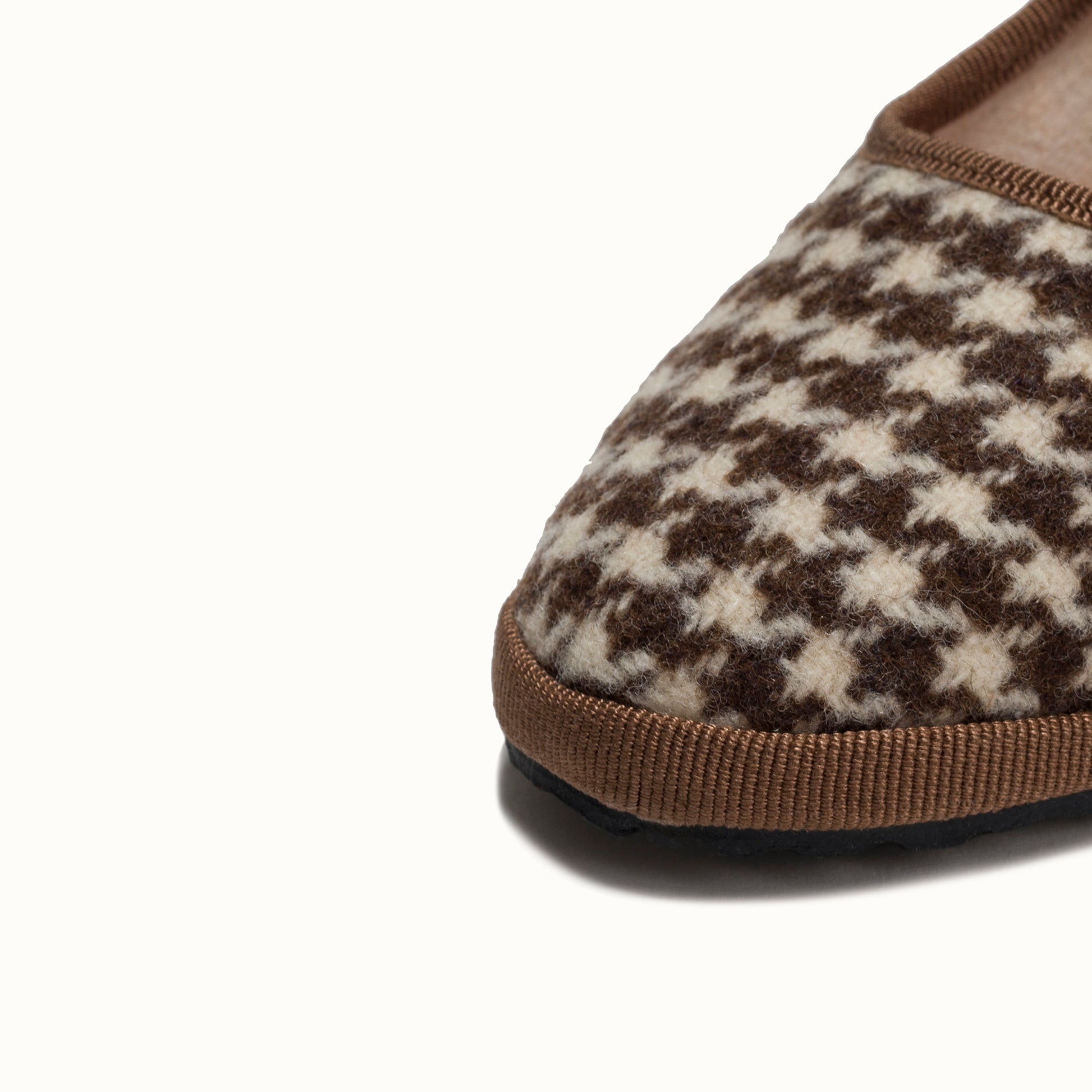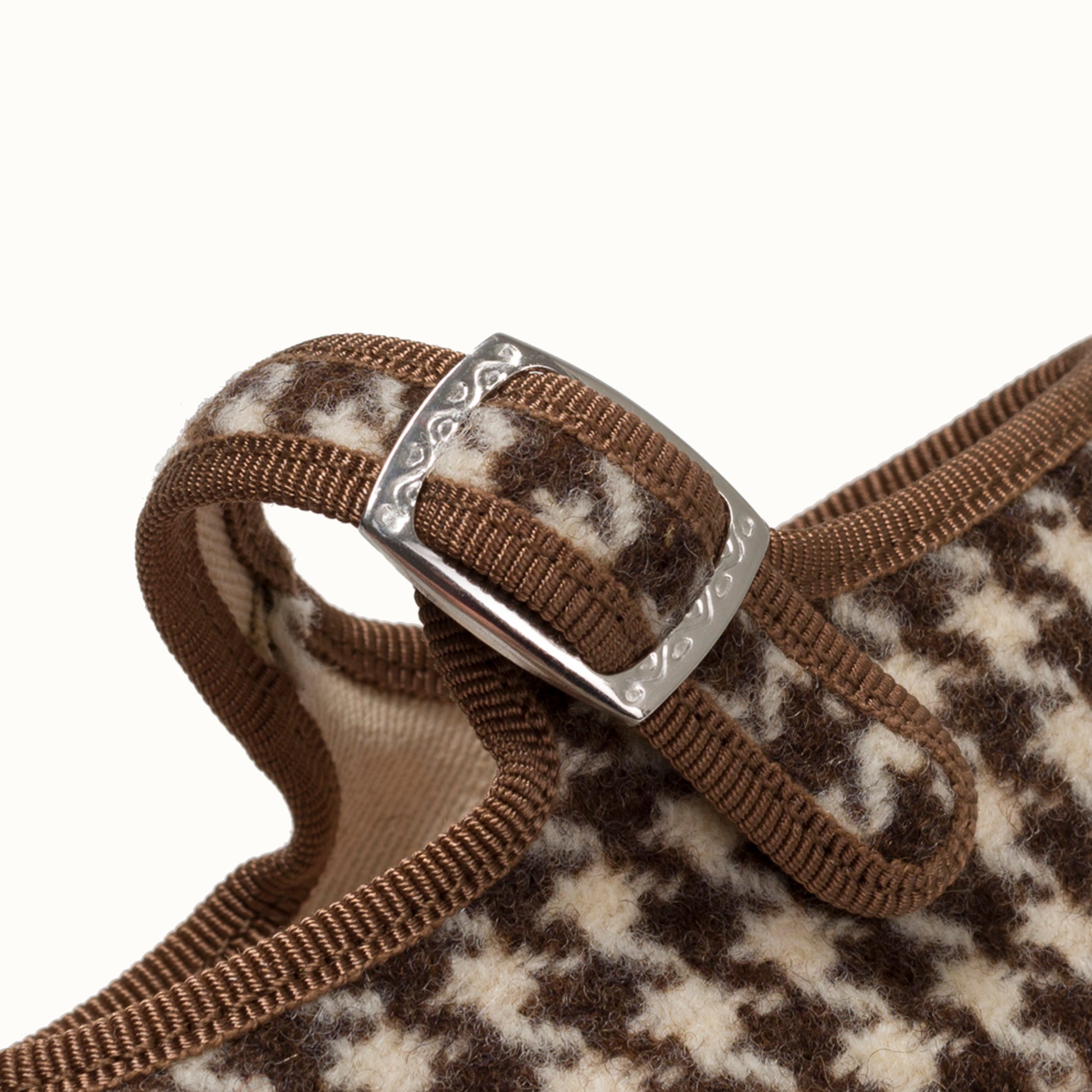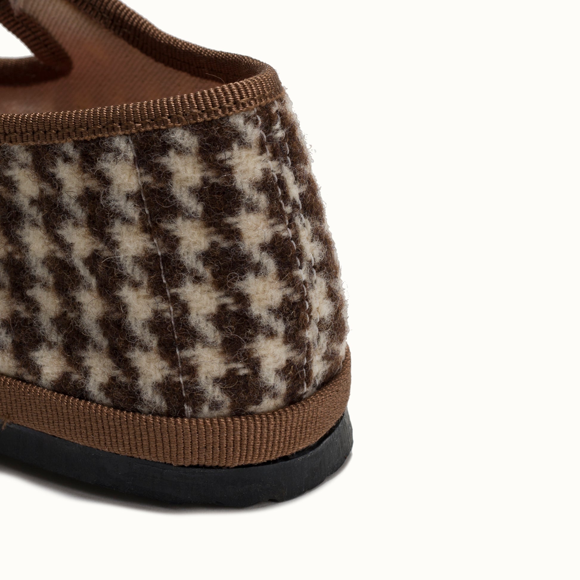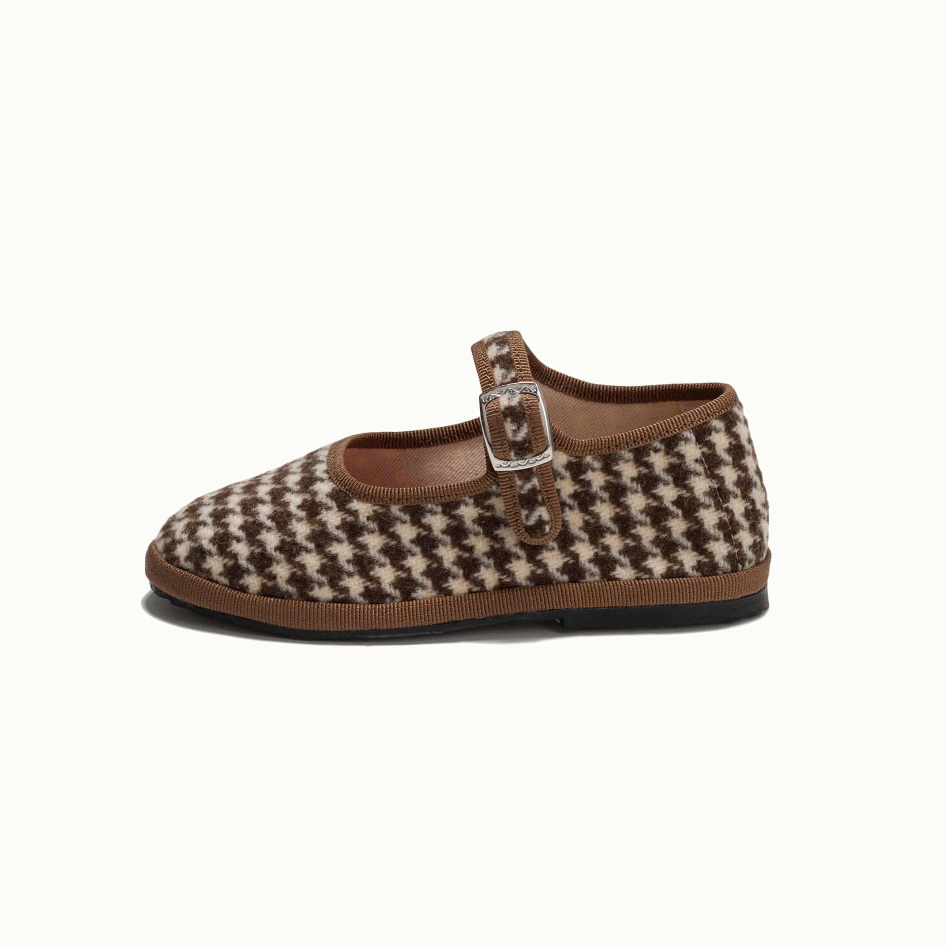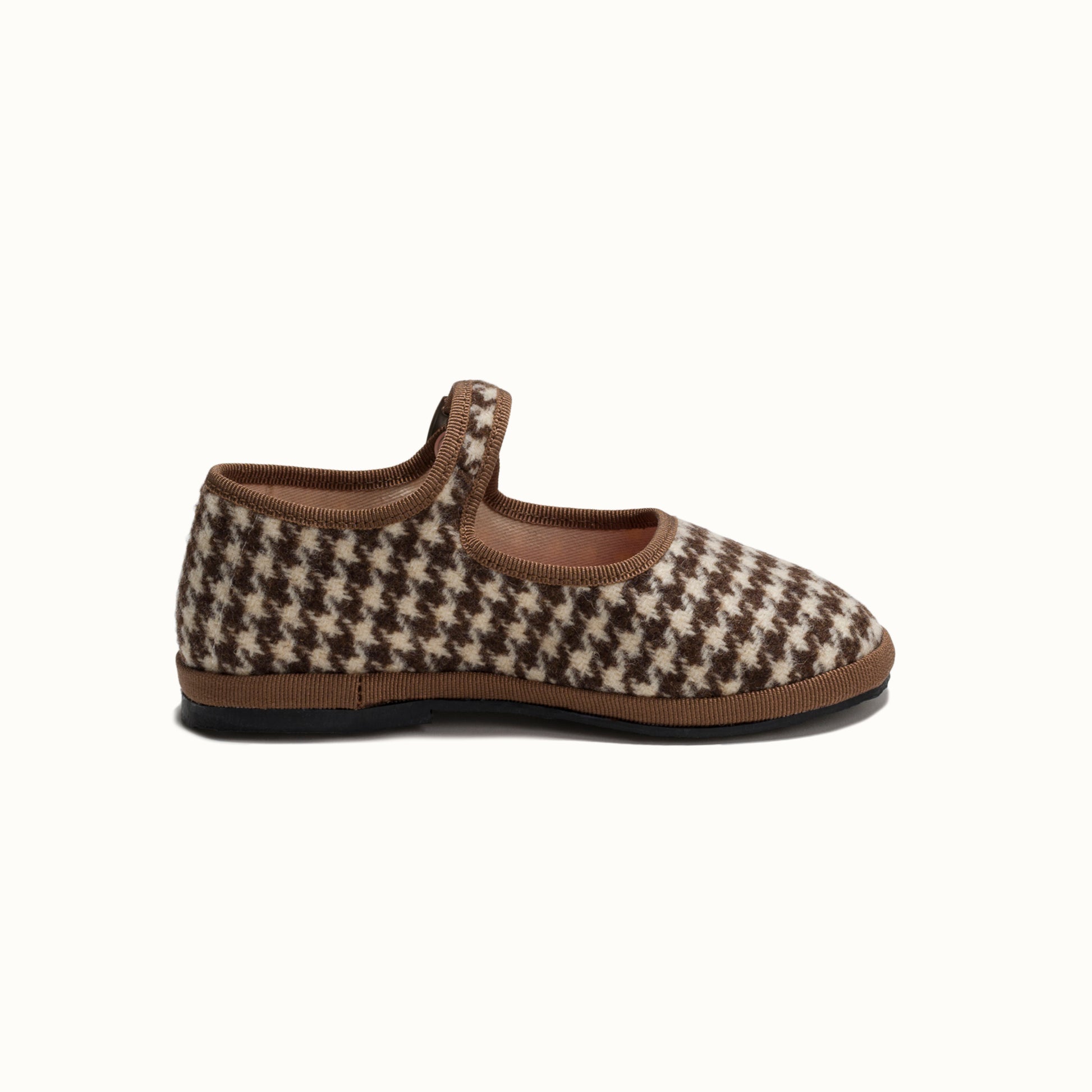 Maryjane in tweed with chocolate and cream houndstooth pattern.