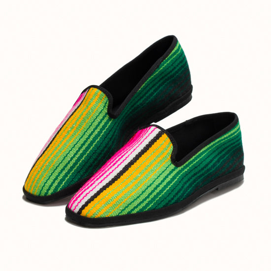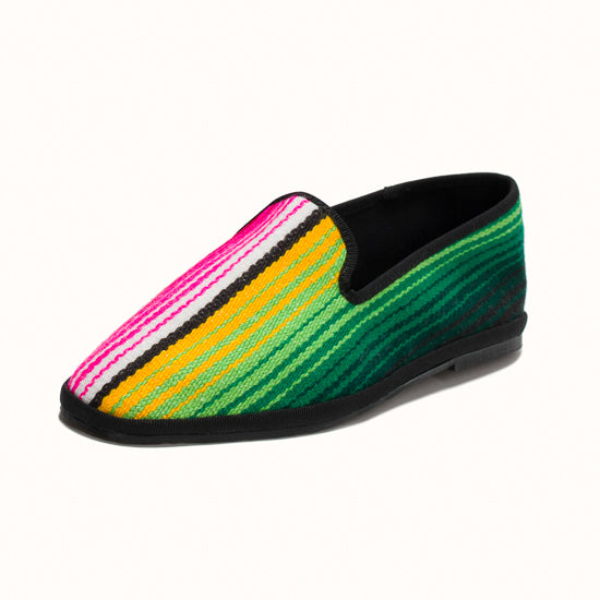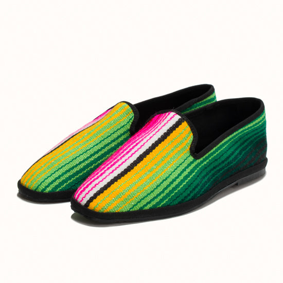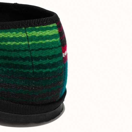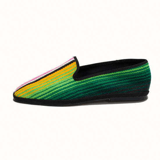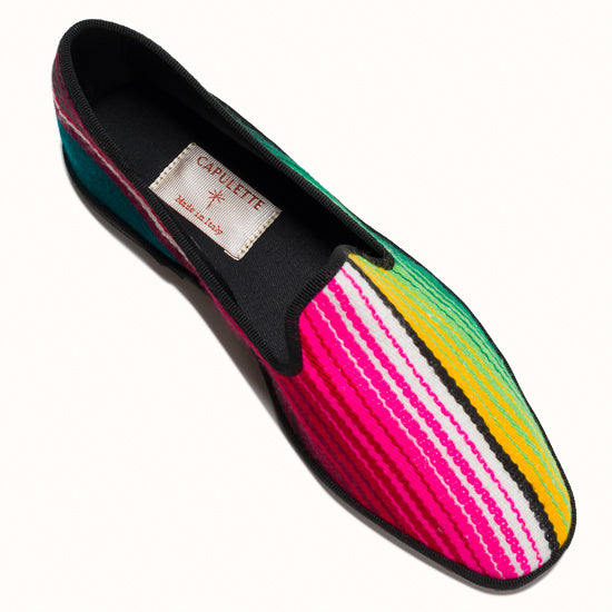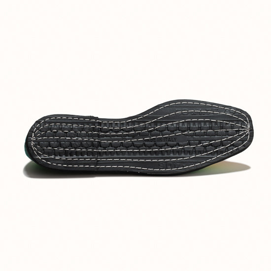 The insole is in black cotton, and the outsole in traditional bicycle tire.