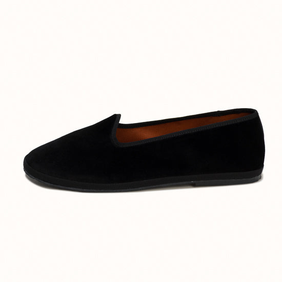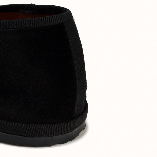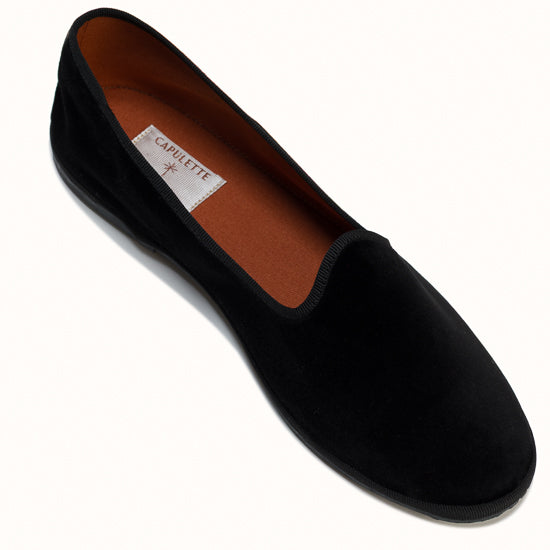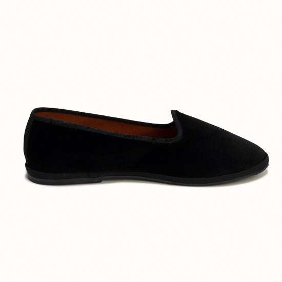 Friulane in black velvet with tone-on-tone grosgrain edging.