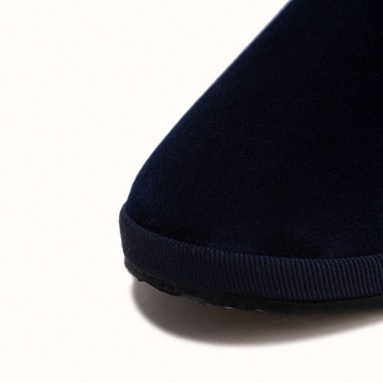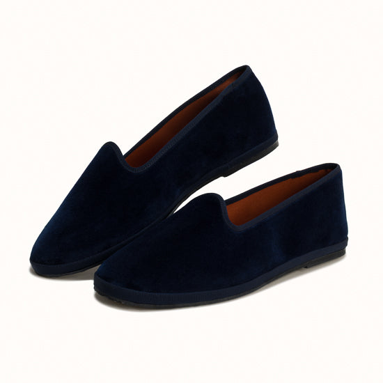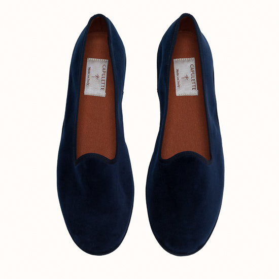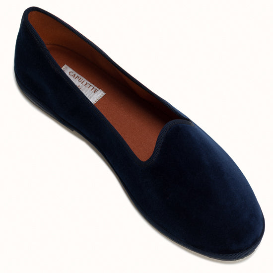 Friulane in black velvet with tone-on-tone grosgrain edging.