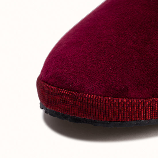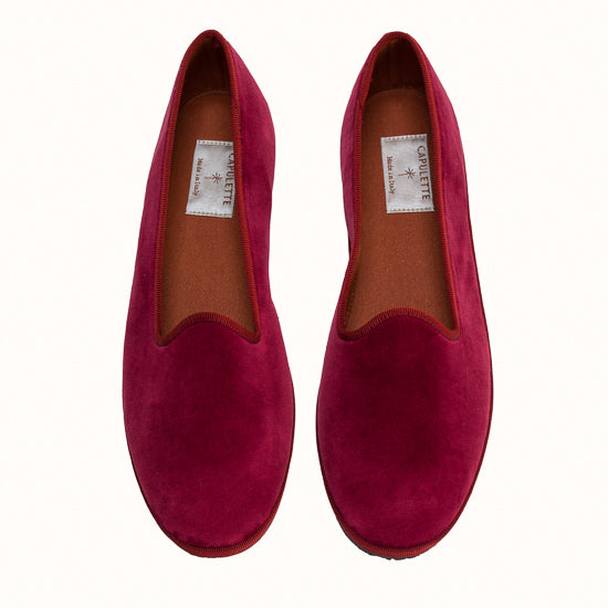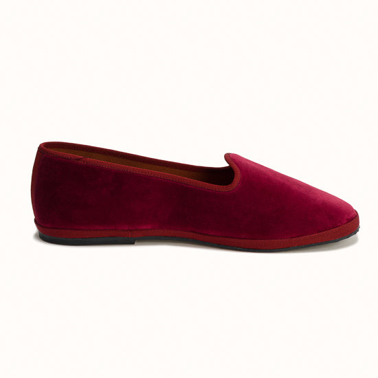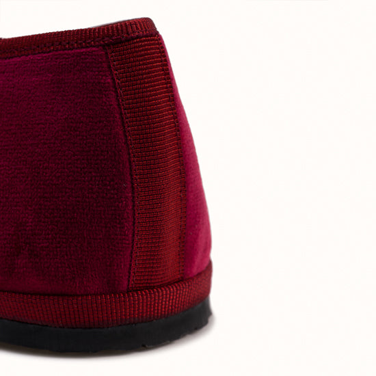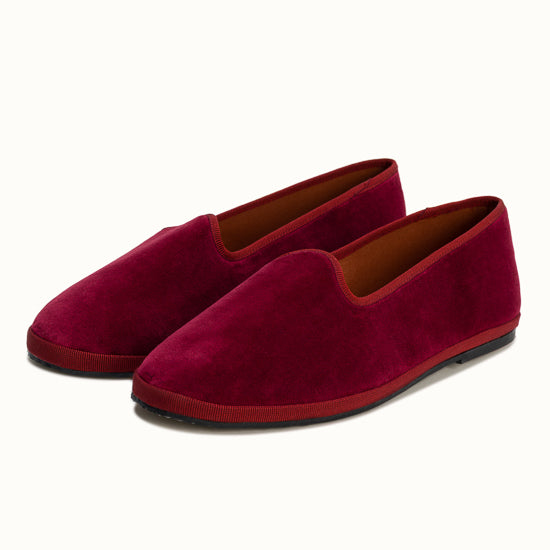Friulane in burgundy-red velvet with tone-on-tone grosgrain edging.