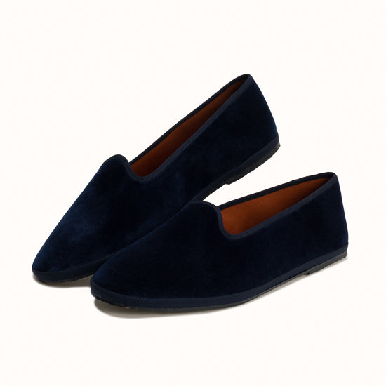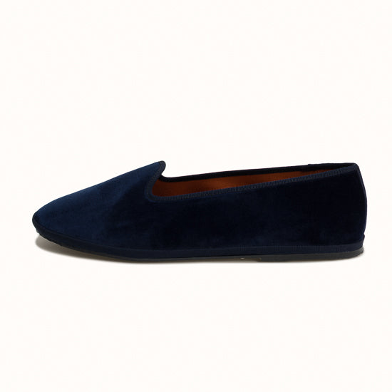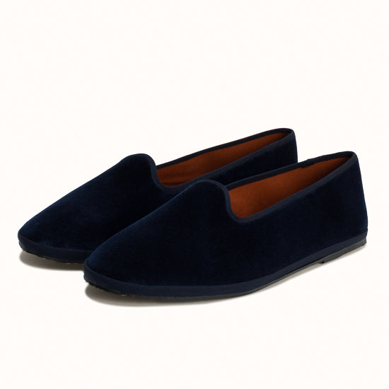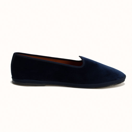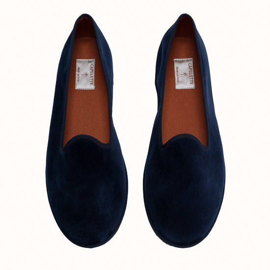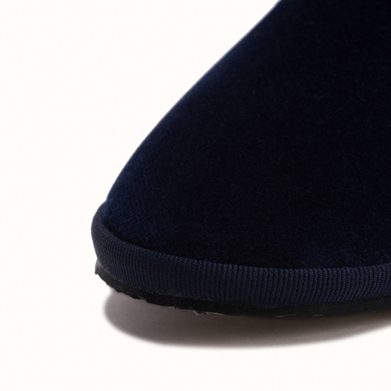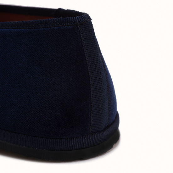 Friulane en velours bleu marine et rebords en gros grain ton sur ton.