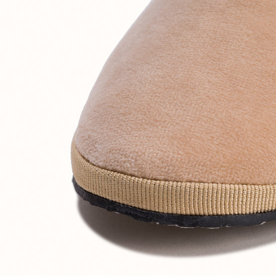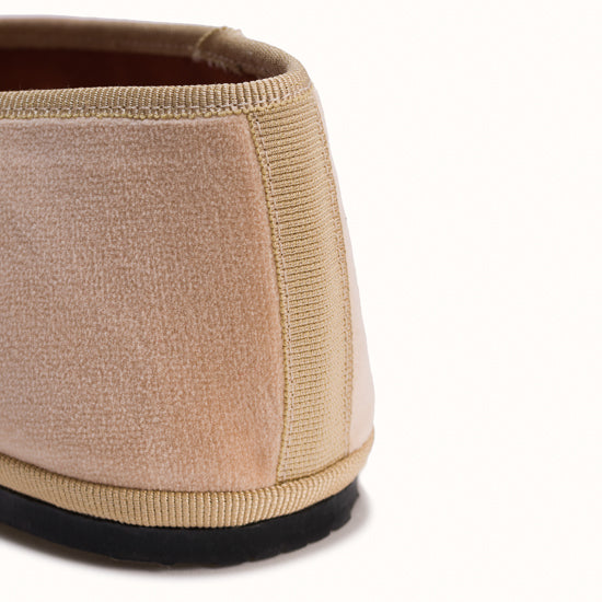 Friulane en velours beige et rebords en gros grain beige.