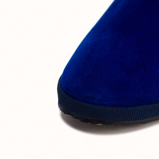 Friulane en velours bleu électrique et rebords en gros grain bleu marine.