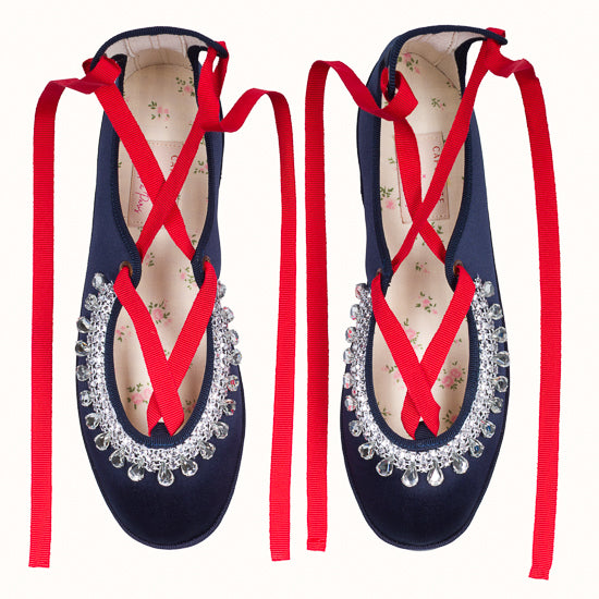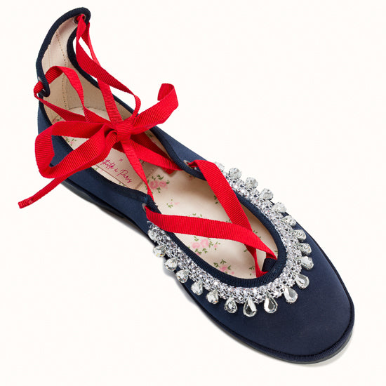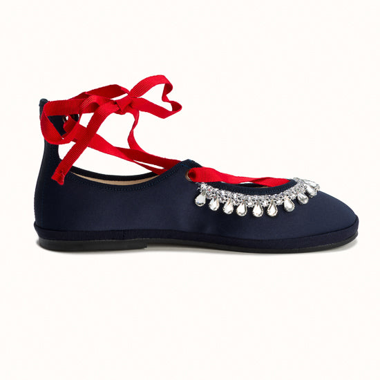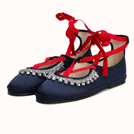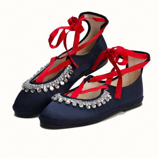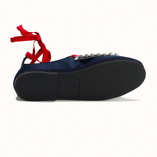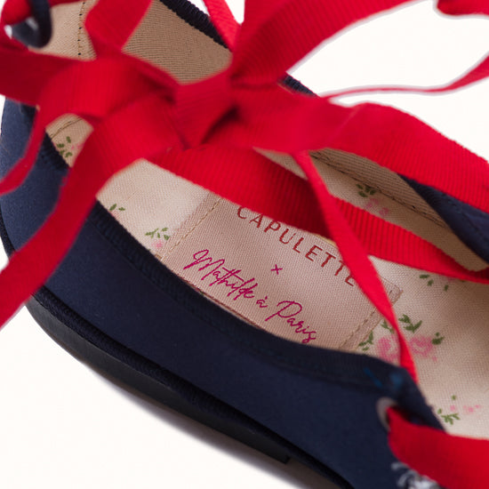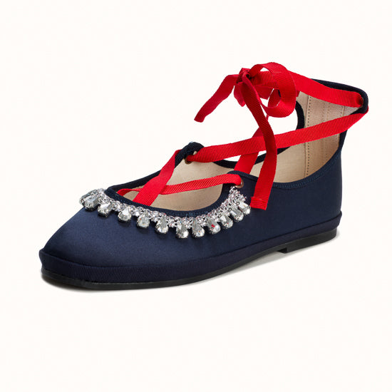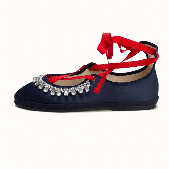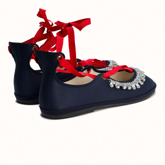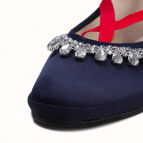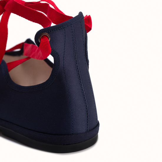 Modèle Alba - Maryjane en satin bleu marine.
