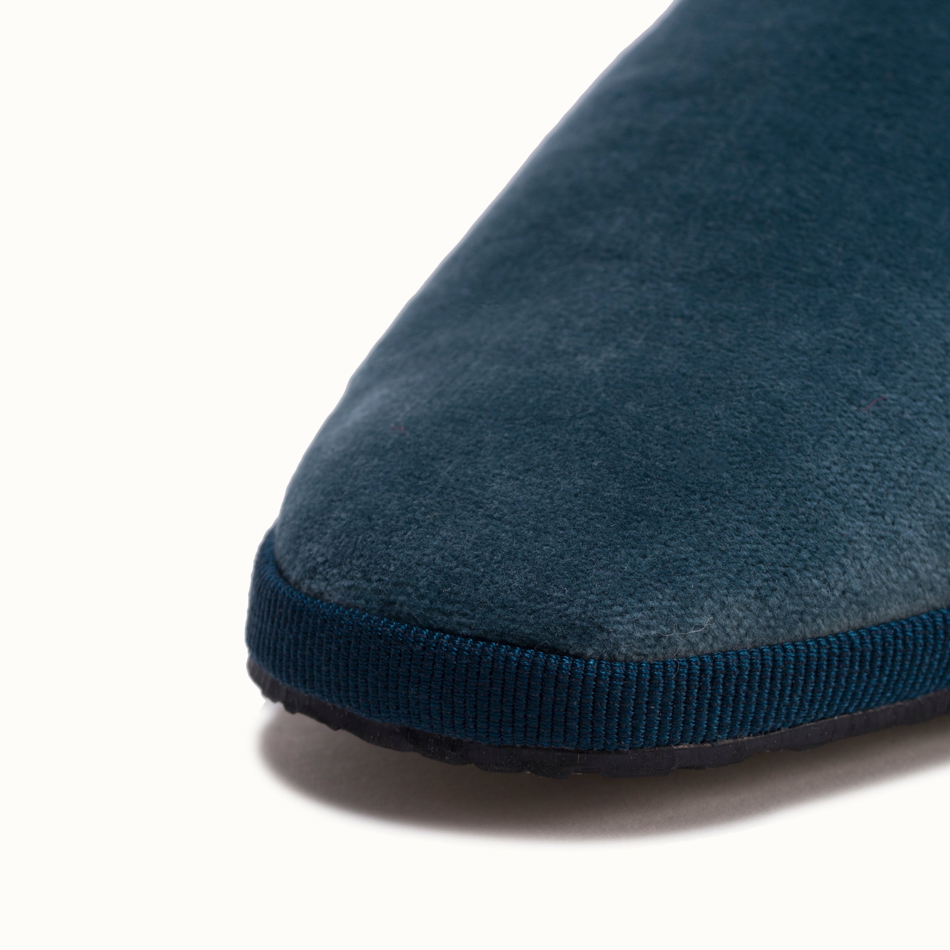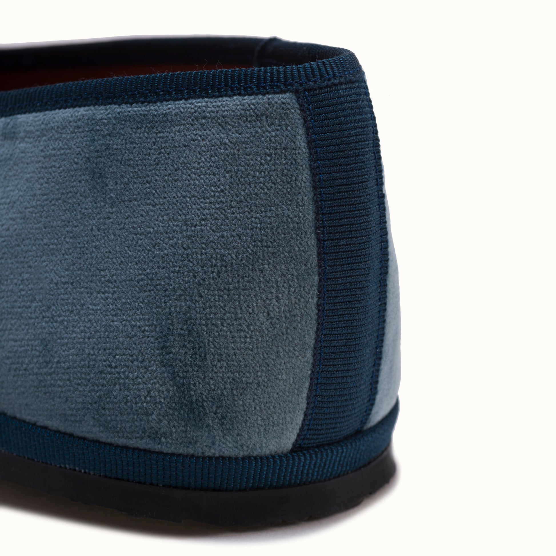 Marchesa en velours blu denim et rebords en gros grain bleu.