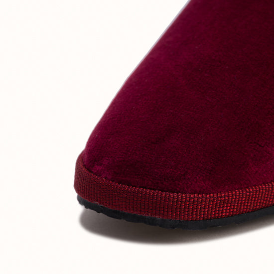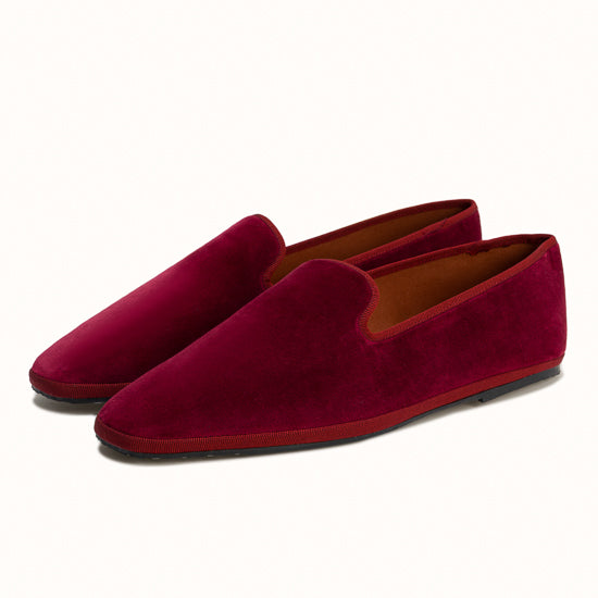 Marchesa in burgundy velvet with tone-on-tone grosgrain edging.