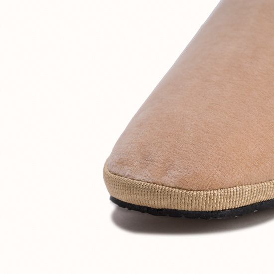 Marchesa en velours beige sable et rebords en gros grain ton sur ton .