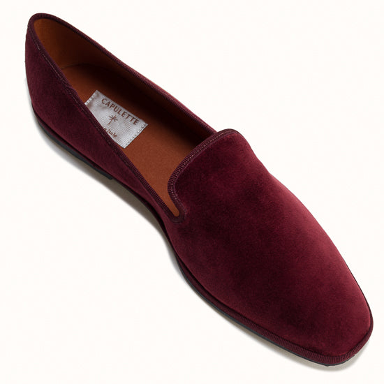 Marchesa en velours lie de vin et rebords en gros grain ton sur ton.