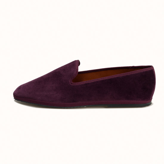 Marchesa in plum velvet with tone-on-tone grosgrain edging.