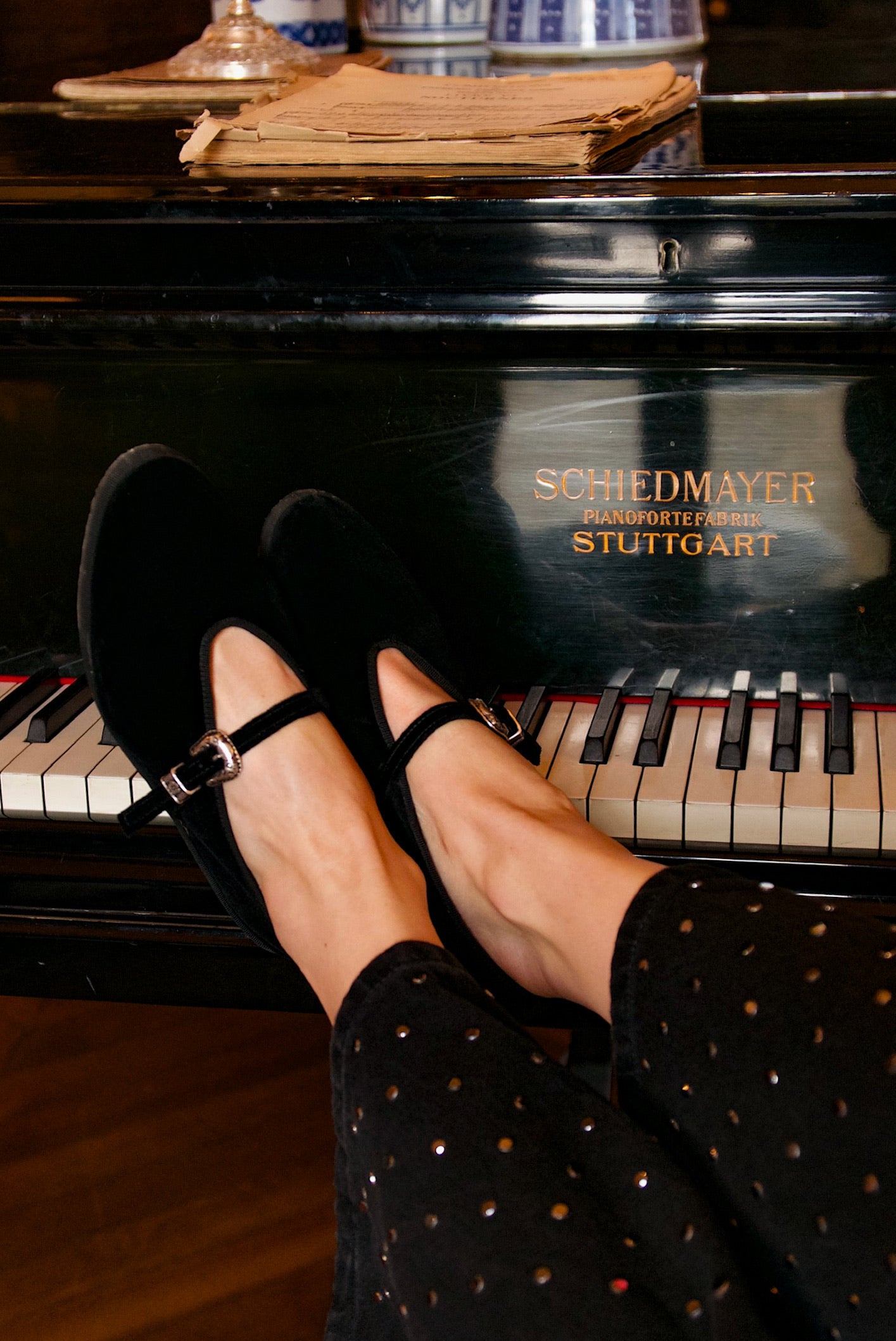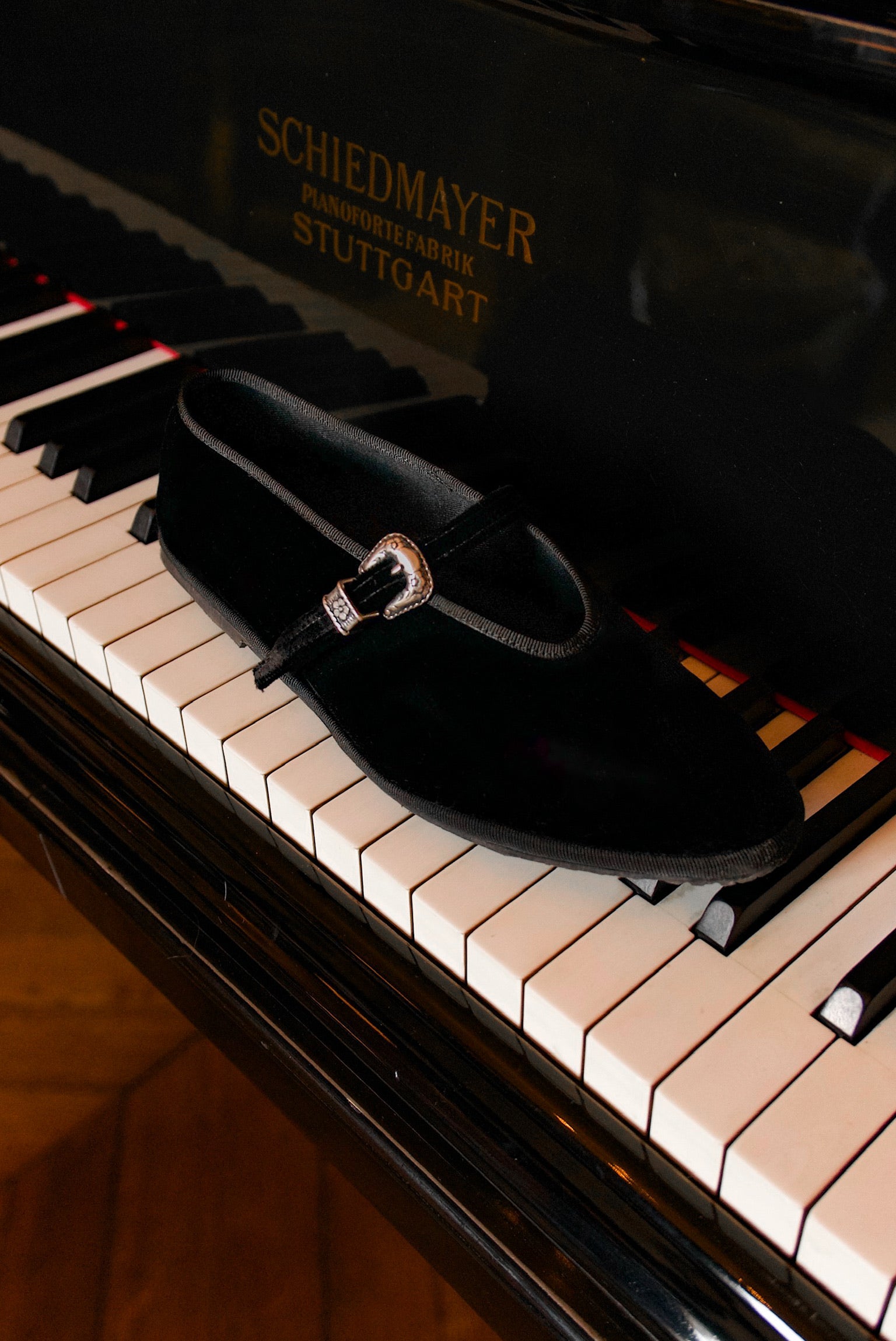 The insole is made of black cotton and and the outsole is made of a traditional bicycle tire.