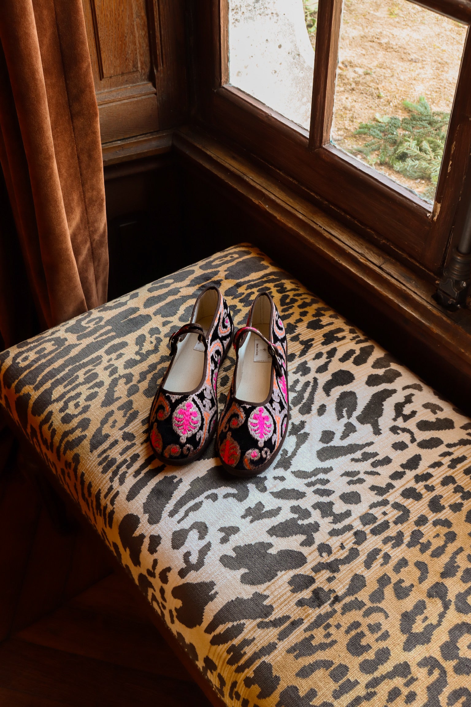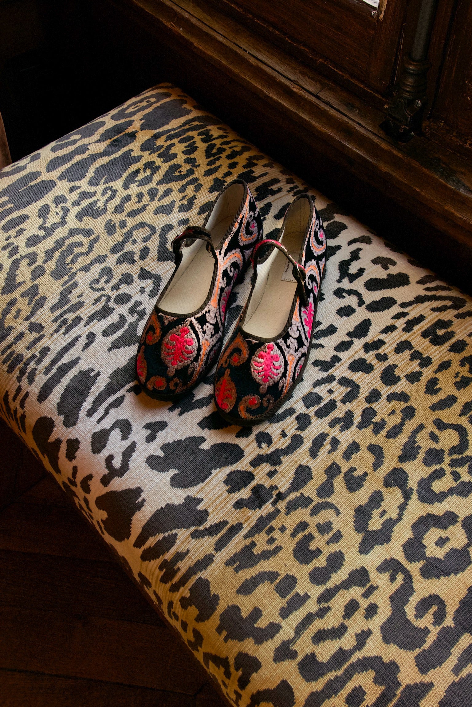 Maryjane in black ikat-print velvet.