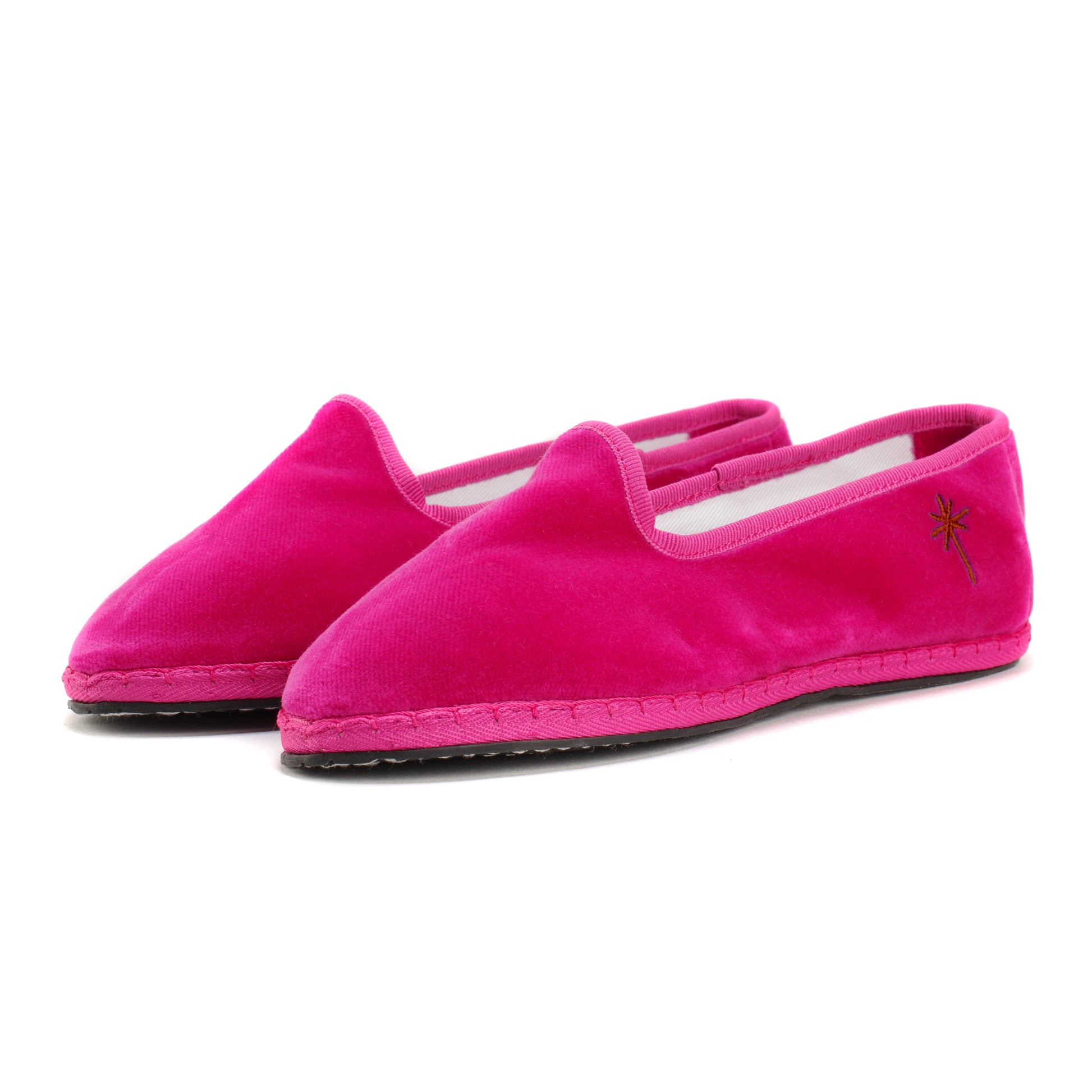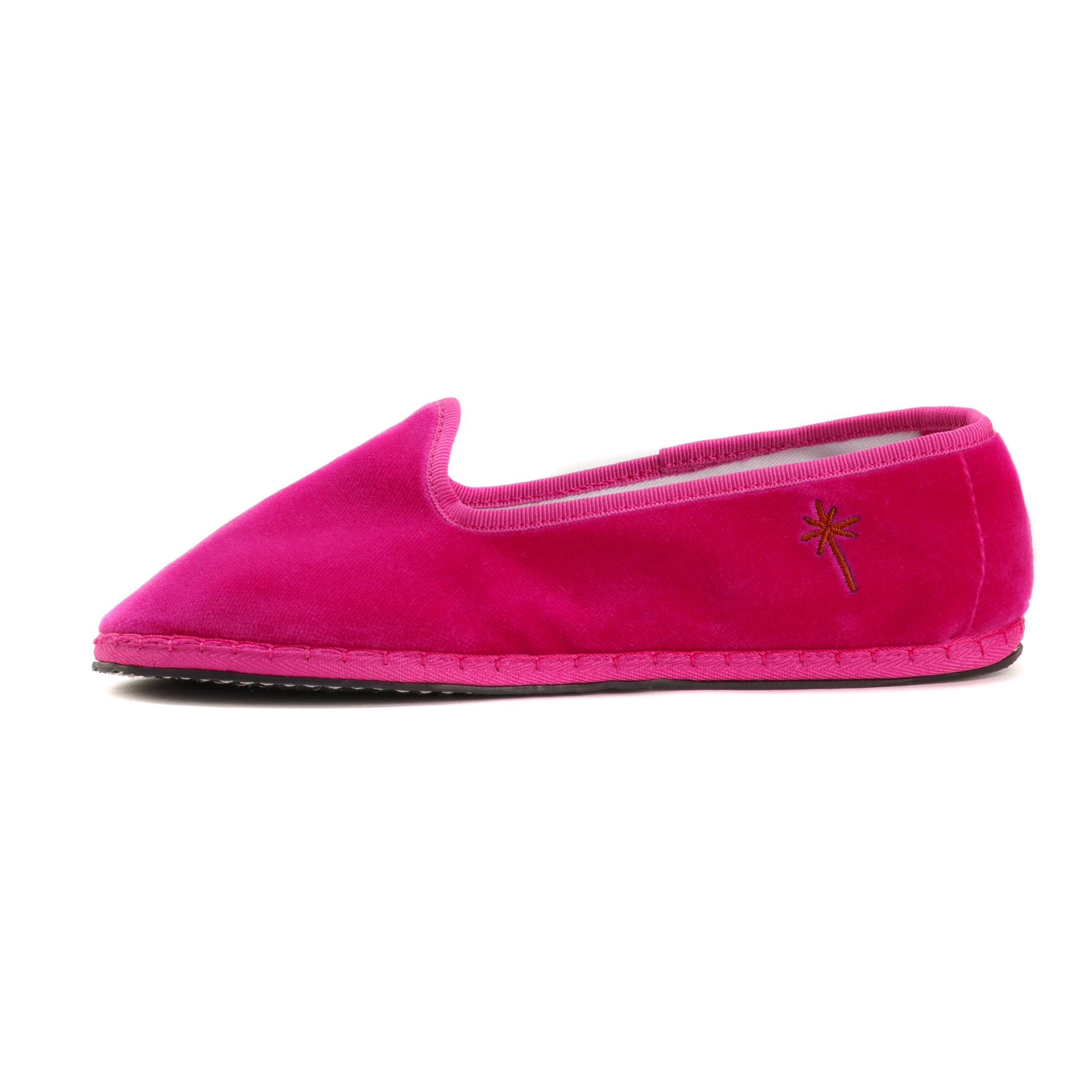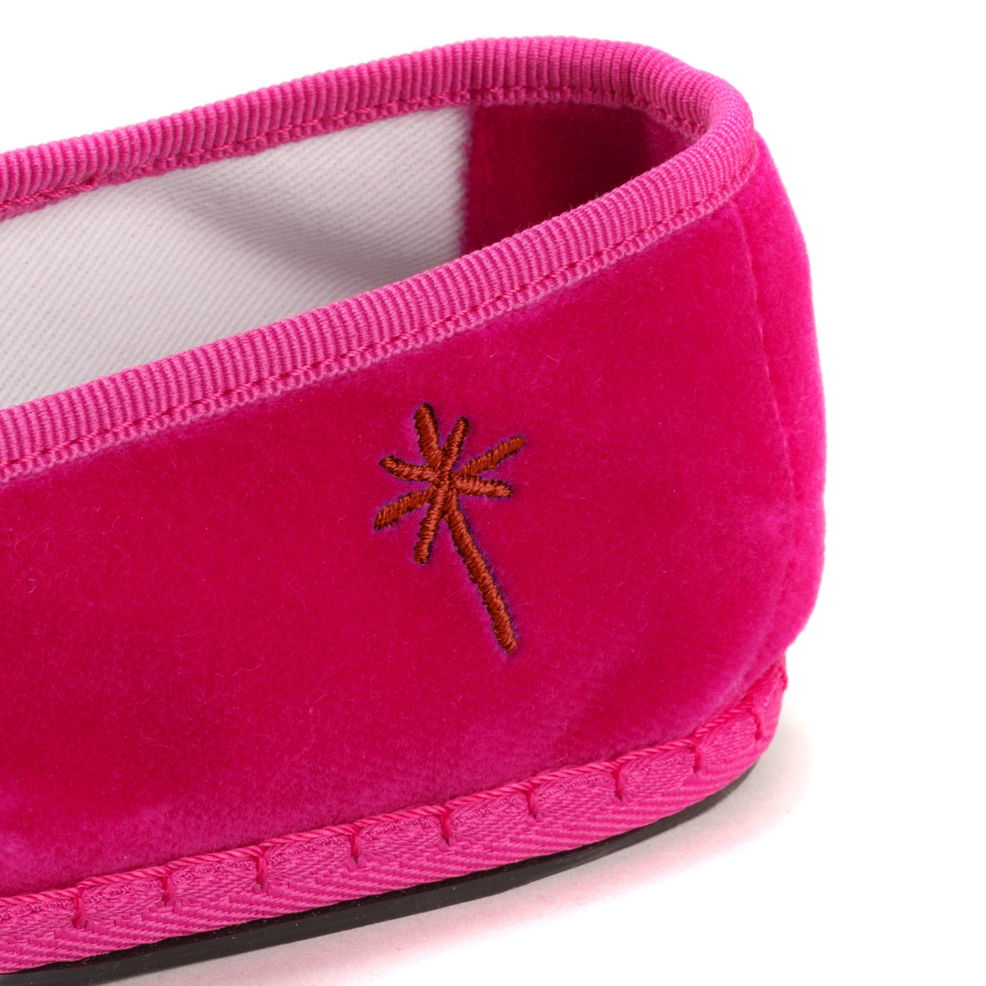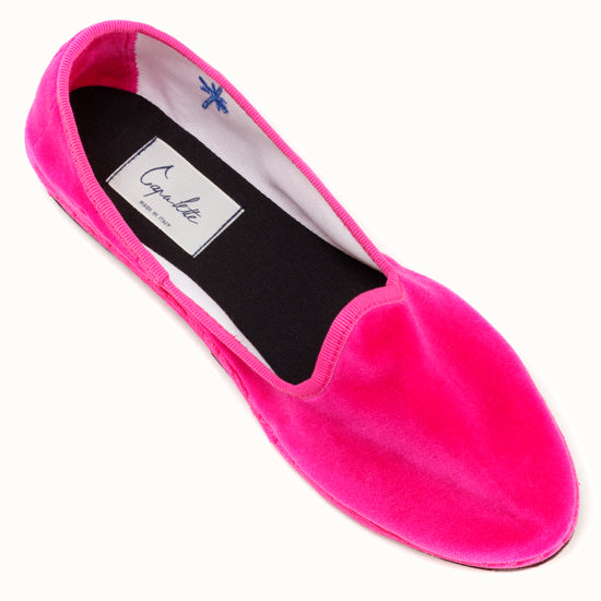 Friulane in fuchsia-pink velvet with tone-on-tone grosgrain edging.