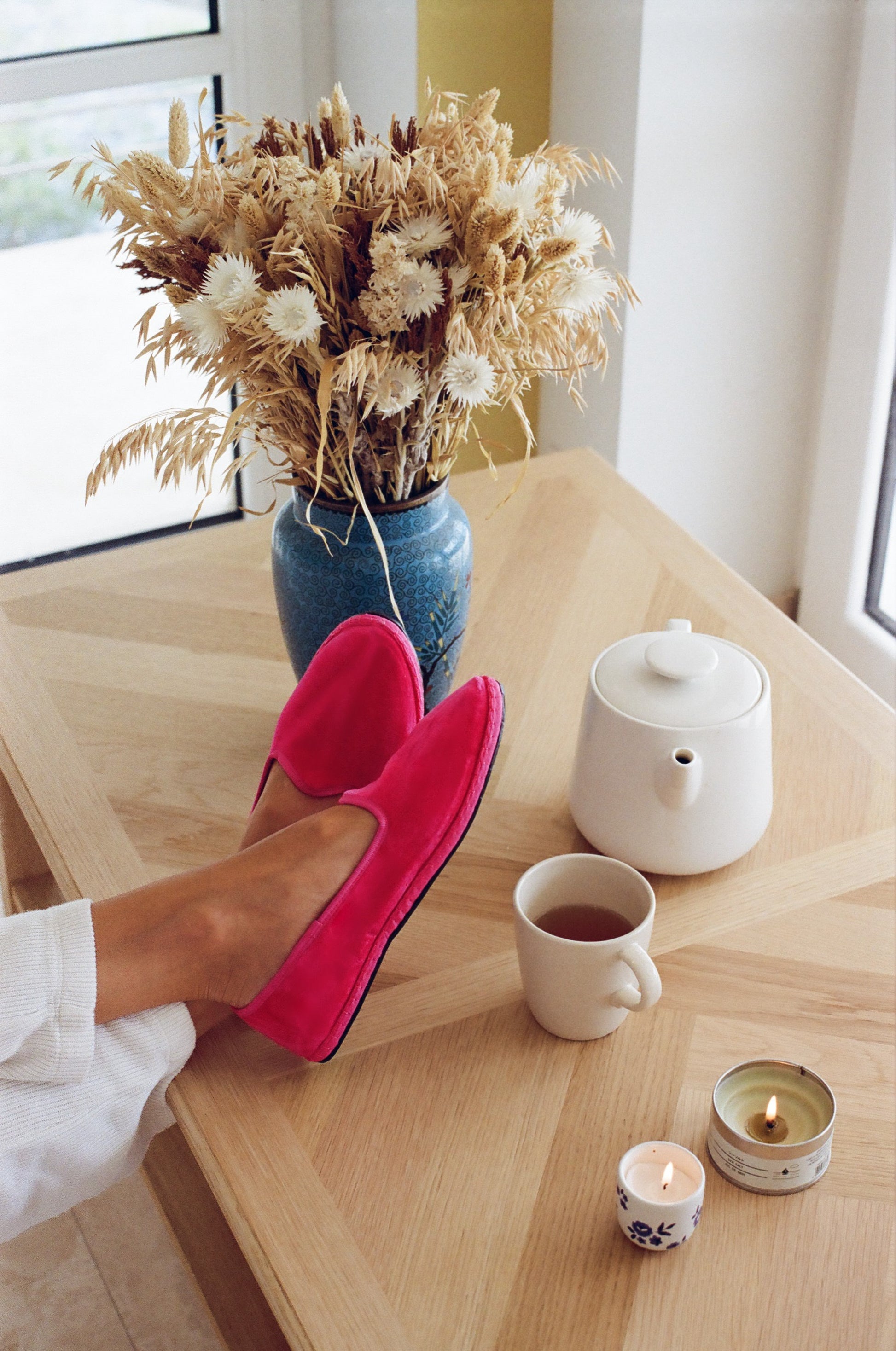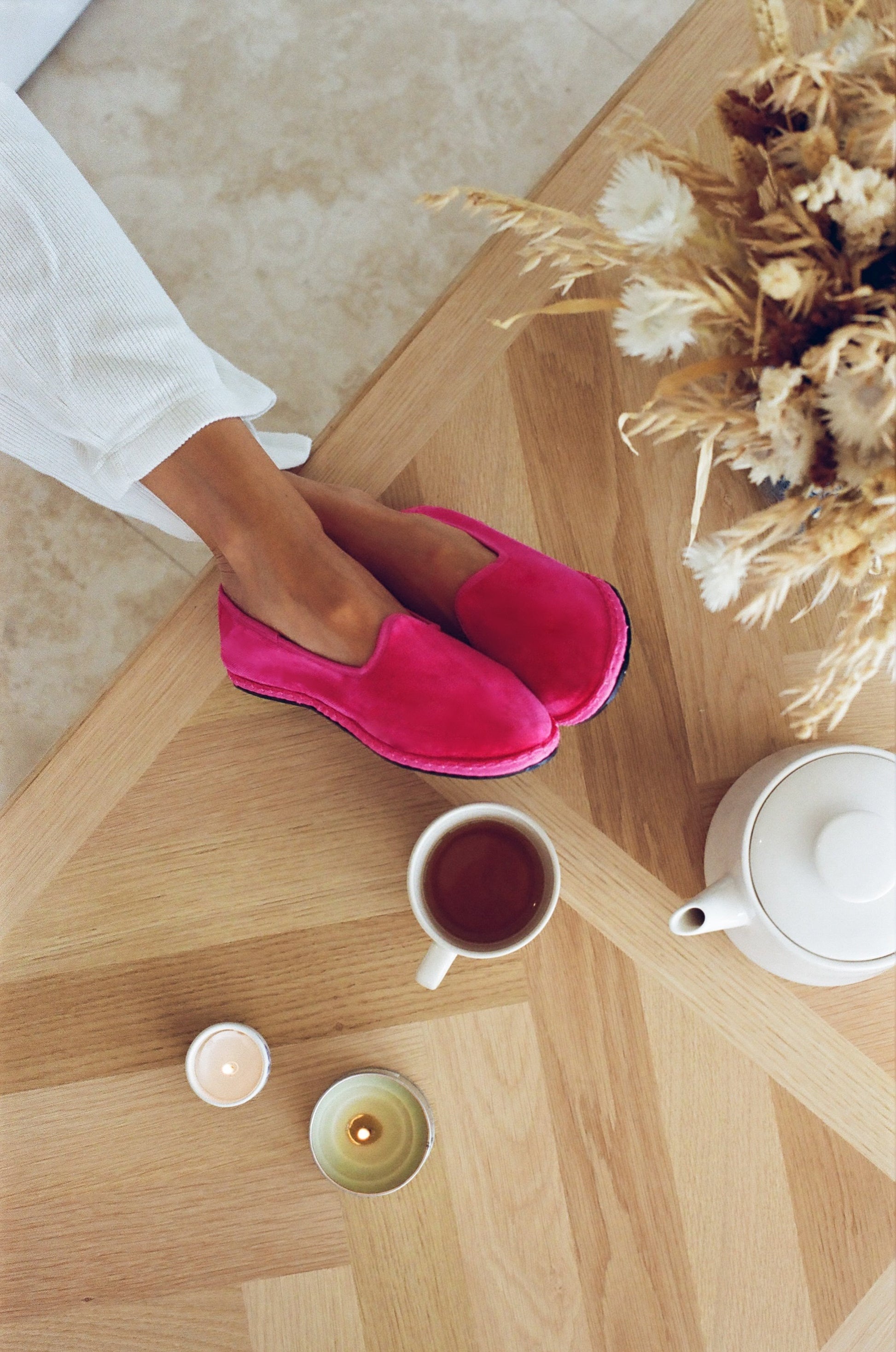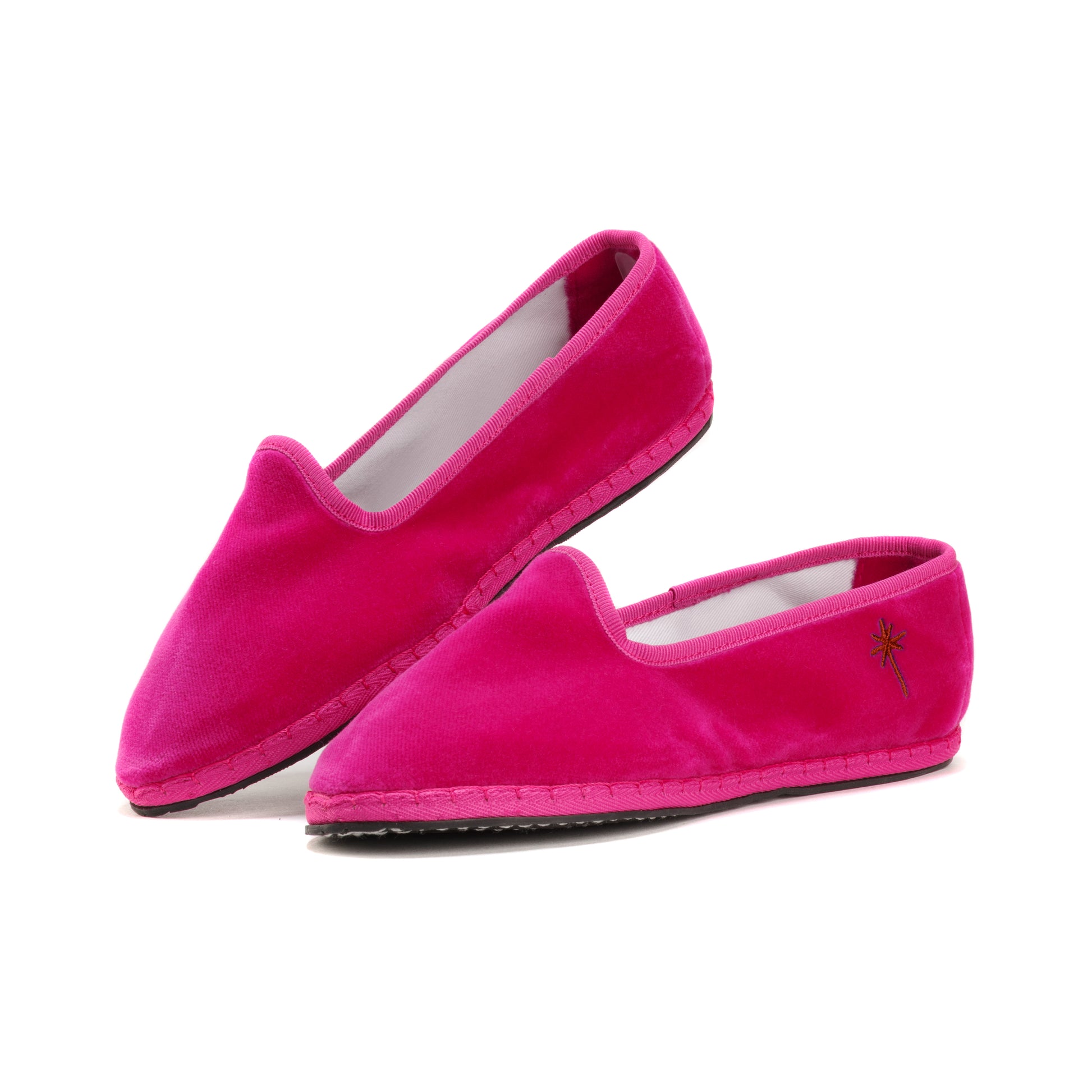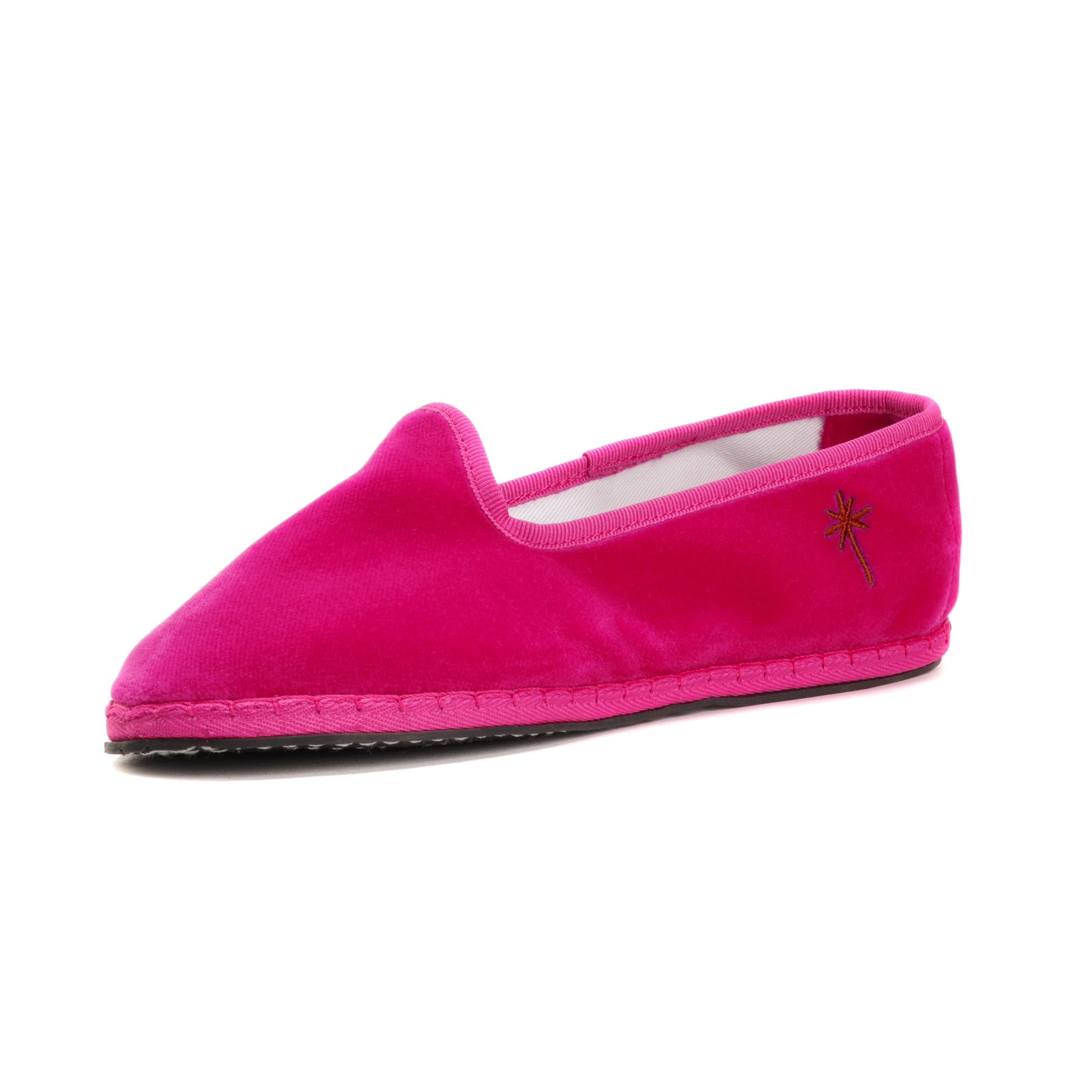 Friulane in fuchsia-pink velvet with tone-on-tone grosgrain edging.
