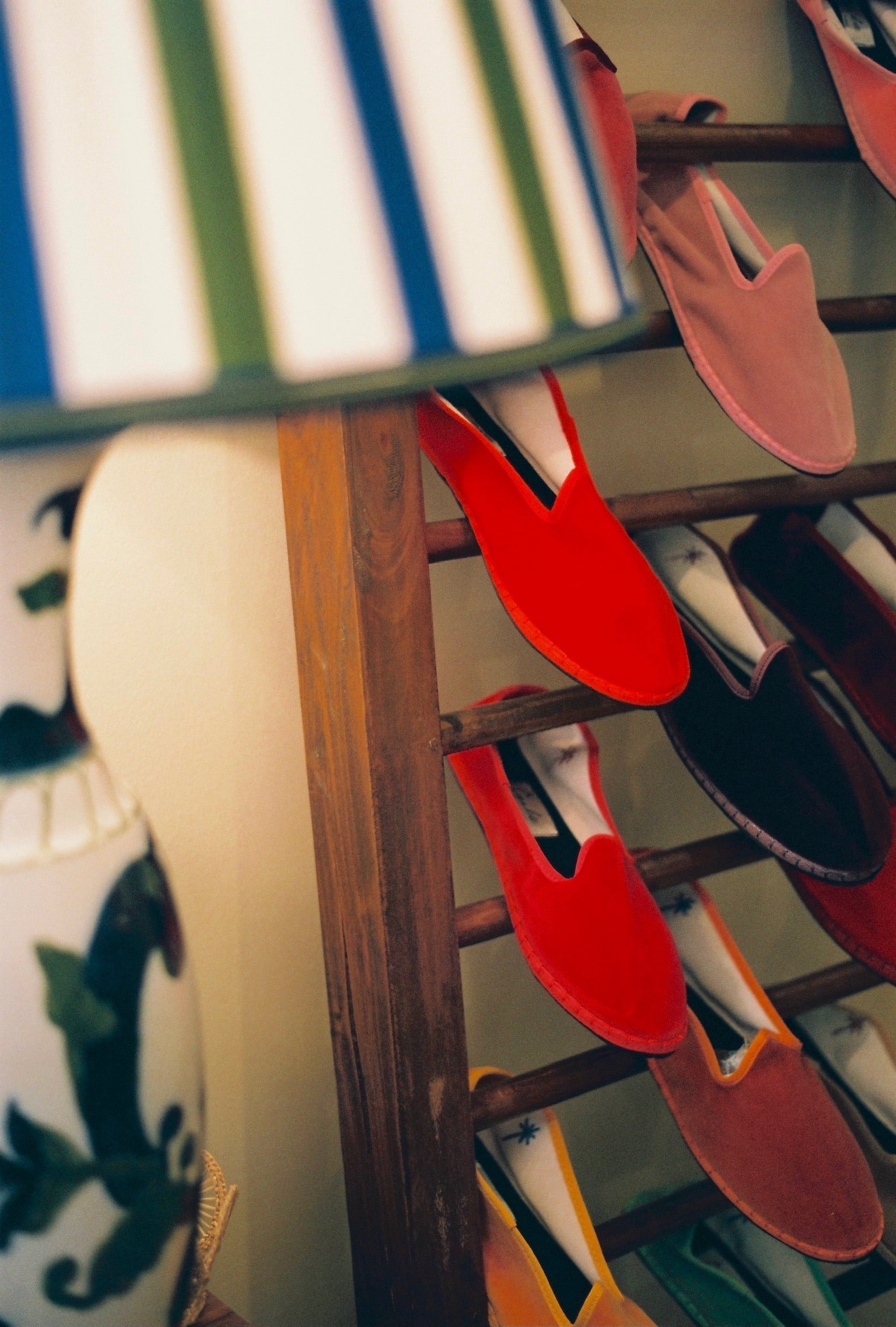 Friulane in poppy red velvet with tone-on-tone grosgrain edging.