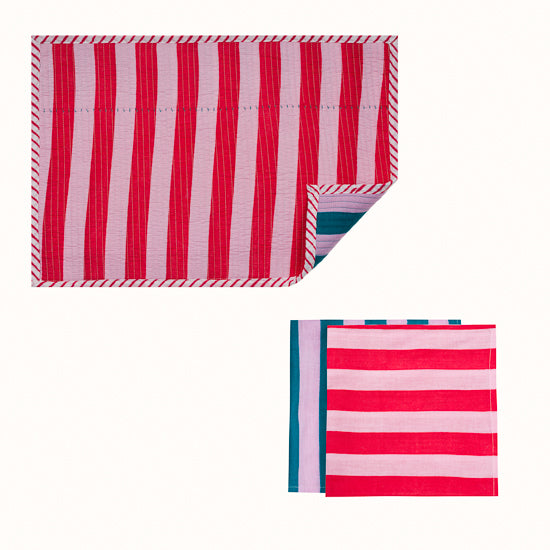 Set de table rectangulaire réversible en coton imprimé blockprint, et finition matelassée.
