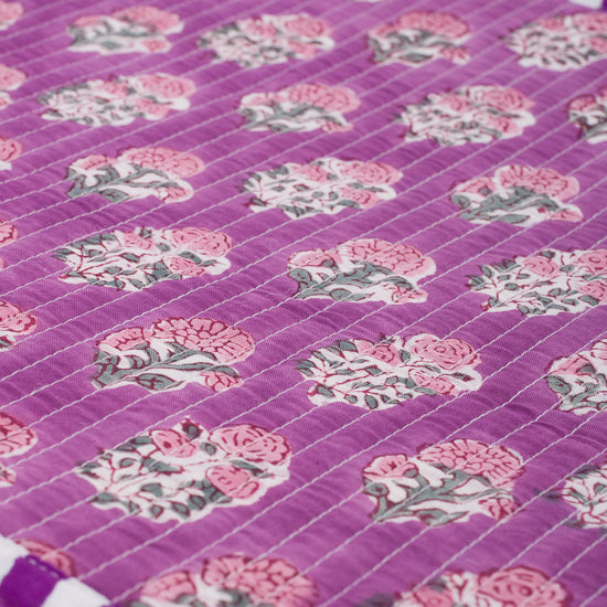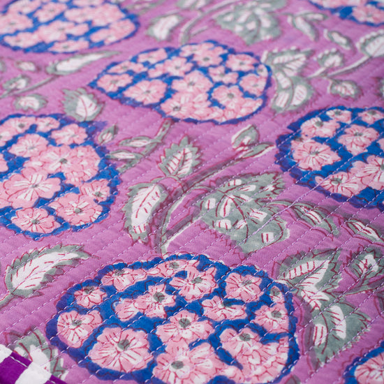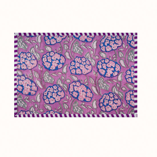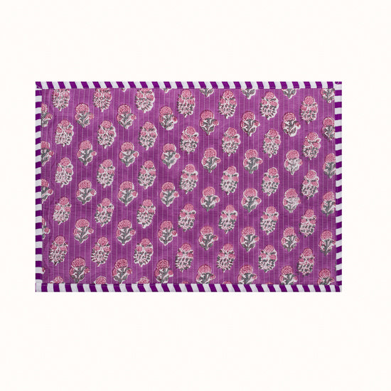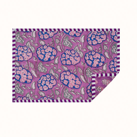 Set de table rectangulaire réversible en coton imprimé blockprint, et finition matelassée.
