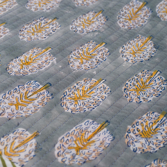 Set de table rectangulaire réversible en coton imprimé blockprint, et finition matelassée.